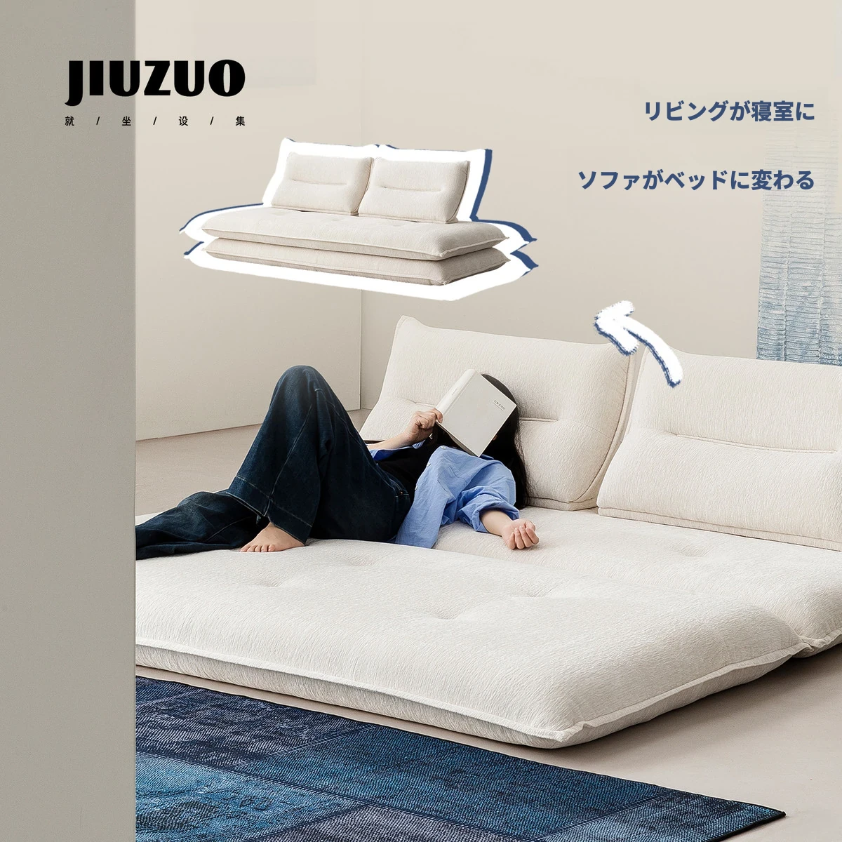 座り心地抜群!洗えるカバー付き、リラックスできるリビング用の多機能ソファベッド。野生の柿のような自然なデザインで、1人でも3人でも使える便利なアイテムです。