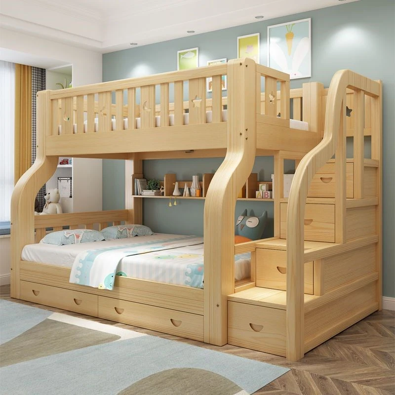 全実木製子供用二段ベッド|大人も使える親子対応の高低ベッド|丈夫で安全なダブルデッキ木製ベッド|お子様の成長を支える快適な寝床!
