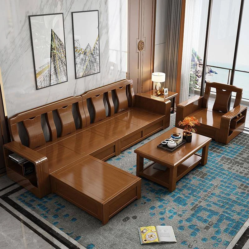 新中式デザインの高品質無垢材ソファ|おしゃれなリビングや商業スペースに最適!経済的でシンプルなU字型、狭い部屋にもぴったりのコンパクトサイズ。お客様を魅了する空間を演出します!