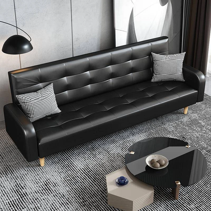 おしゃれなレザーソファ!小さなリビングにぴったりの折りたたみソファベッド。ホテルやアパート、理髪店にも最適なデザイン。二人掛け・三人掛け両方対応、スタイリッシュで機能的な空間を演出します!