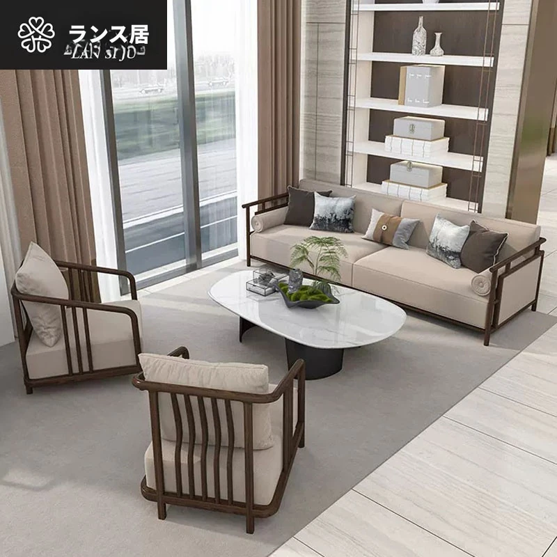 144新中式沙发 - 実用的木製と軽やかな高級感、モダンでシンプルなデザイン。別荘やリビングに最適な禅風家具セットで、心地よい空間を演出します!