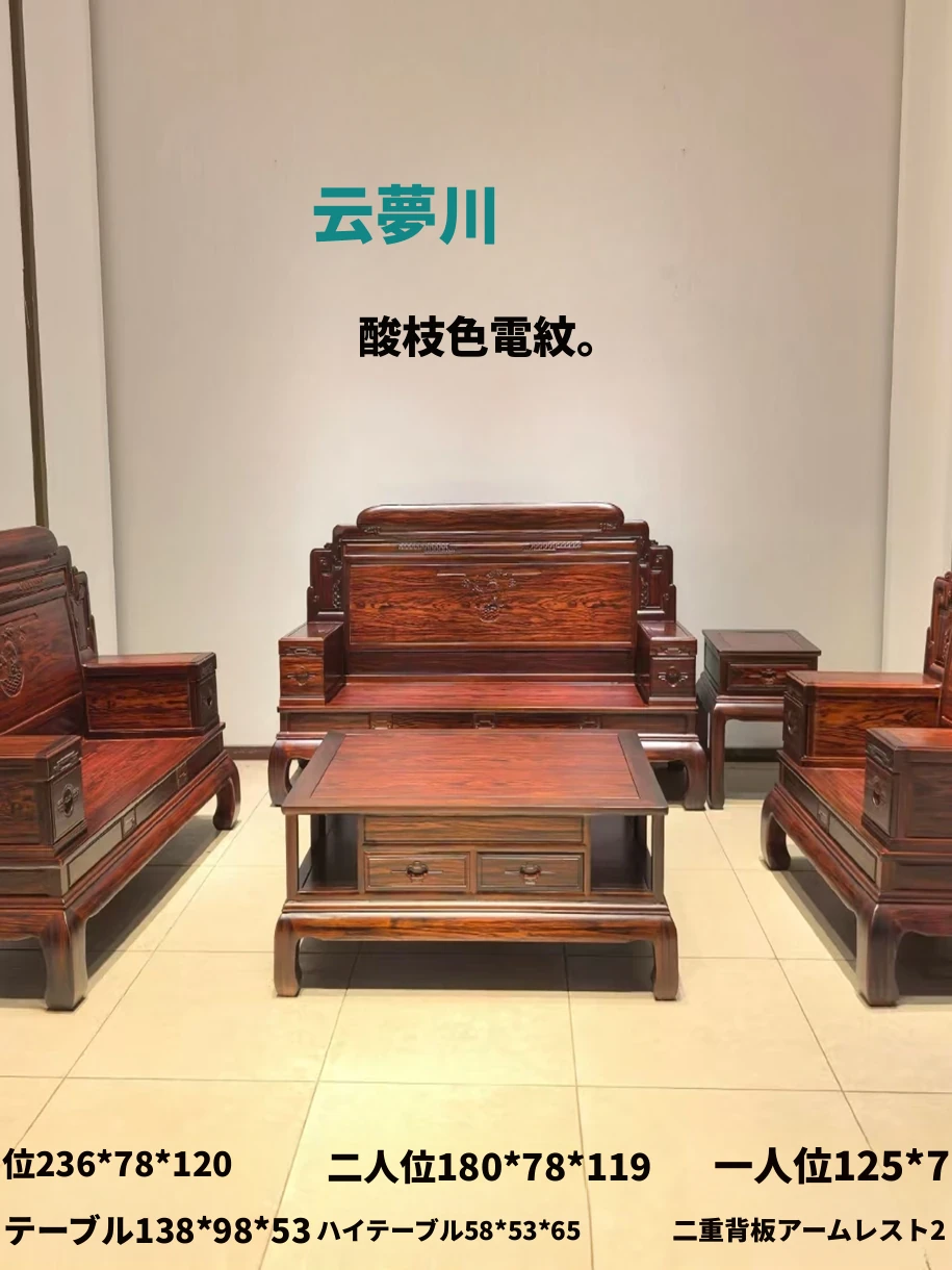 輸入品の紅木ソファ、インポートパイナップルウッド製、全実木の酸枝色マホガニーソファ。高級感溢れる大サイズで、リビングを華やかに彩ります。快適な座り心地と優雅なデザインで、特別な空間を演出します。