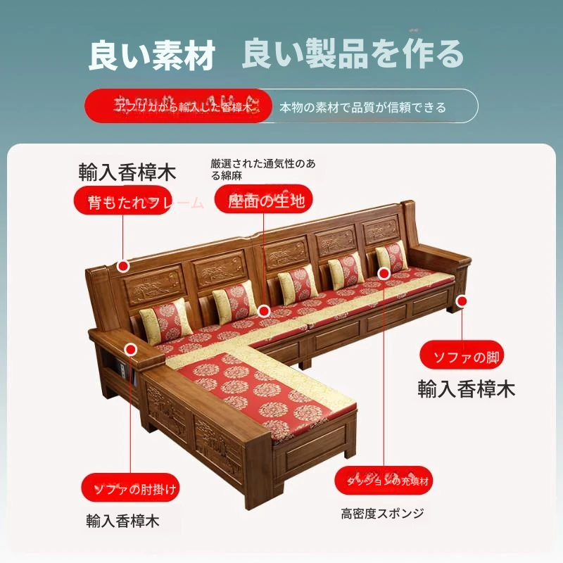 中式香樟木の全実木ソファー 小型リビングに最適!広々とした123組み合わせで、古典的な魅力を持つ家具。高品質な材料で作られたこのソファーは、あなたの家を美しく演出します。
