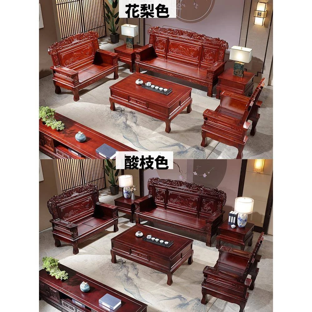 高級輸入パインウッド製新中式紅木ソファ5点セット - 実木の贅沢と快適さが融合!直販特価で、あなたのリビングを華やかに彩ります。