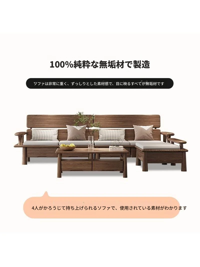 2024年新作!新中式スタイルの北米産ブラックウォールナット無垢材ソファ。シンプルで収納力抜群、リビングルームに最適な家具です。あなたの空間を洗練された雰囲気に変えます!