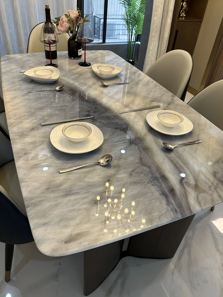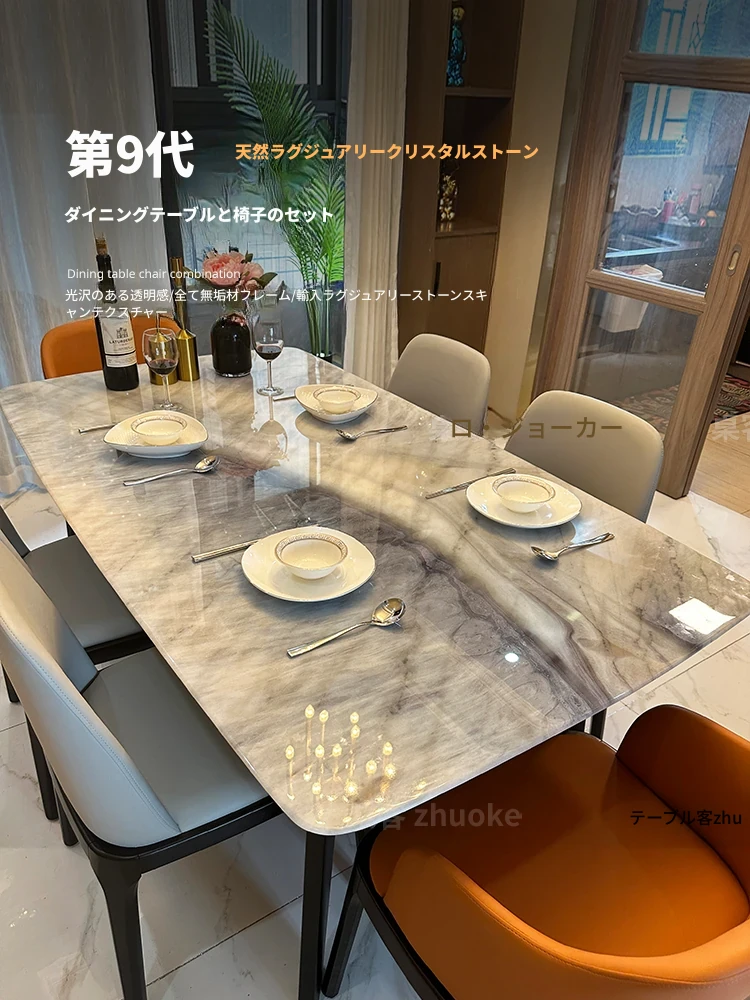 軽奢感漂うマイクロクリスタル石製のダイニングテーブル - シンプルでモダンなデザイン、天然大理石の優雅さを引き立てる超クリスタル石と豪華な玉晶石の美しさを融合!