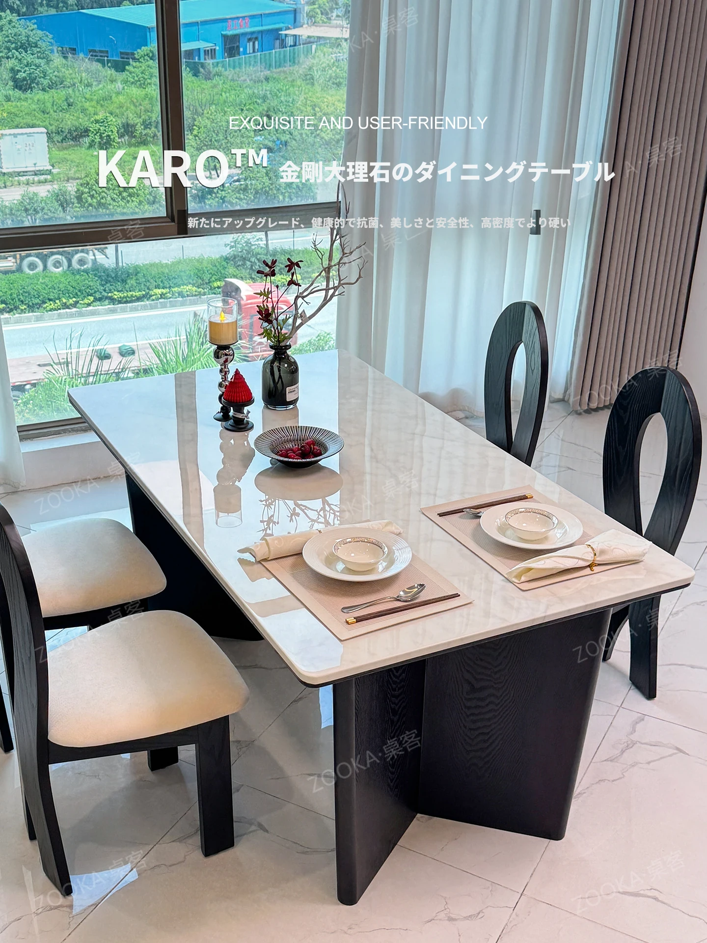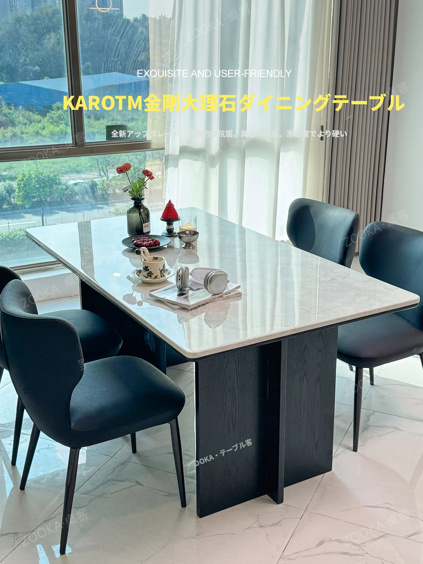 ラグジュアリーな大理石ダイニングテーブルセット|モダンでシンプルな長方形デザイン|天然ミクロ結晶石使用|高級感溢れる無垢材|小さなお部屋にもぴったりなA2サイズ