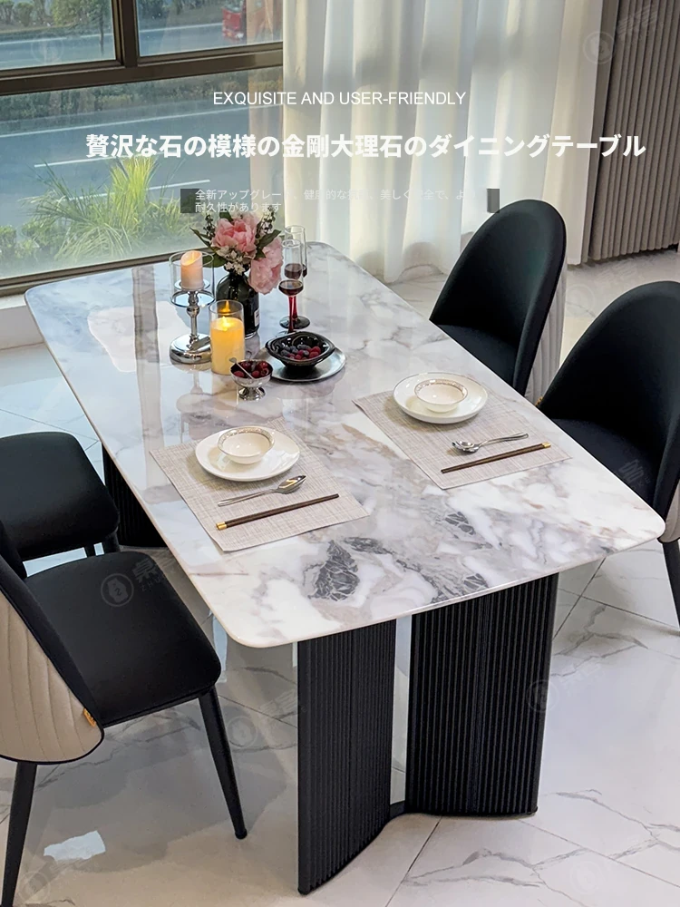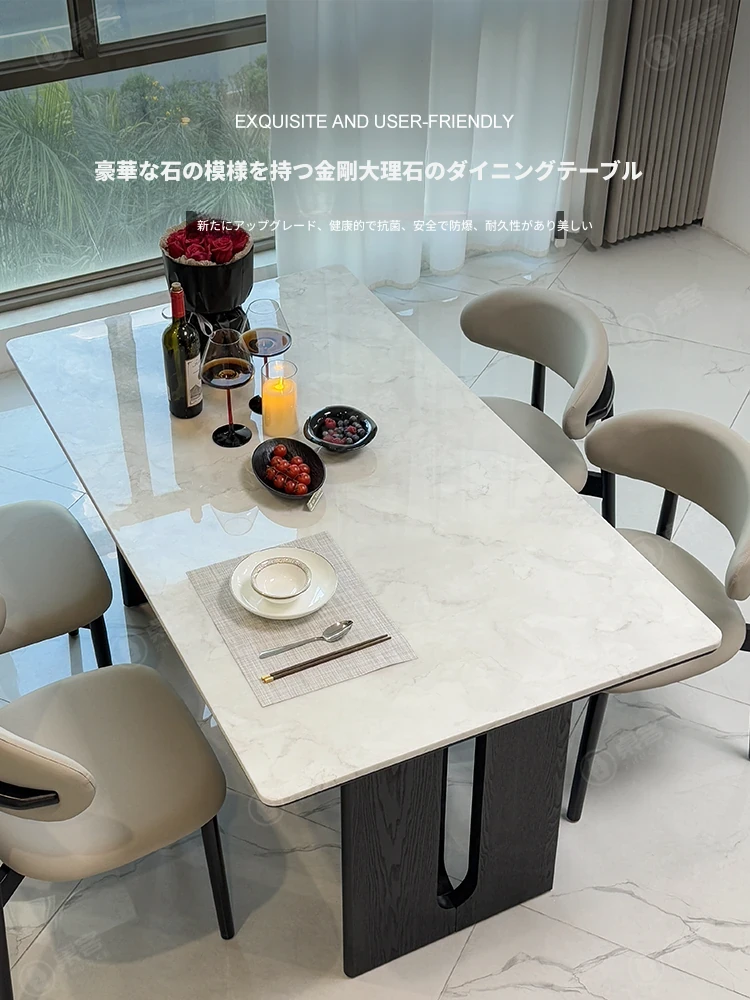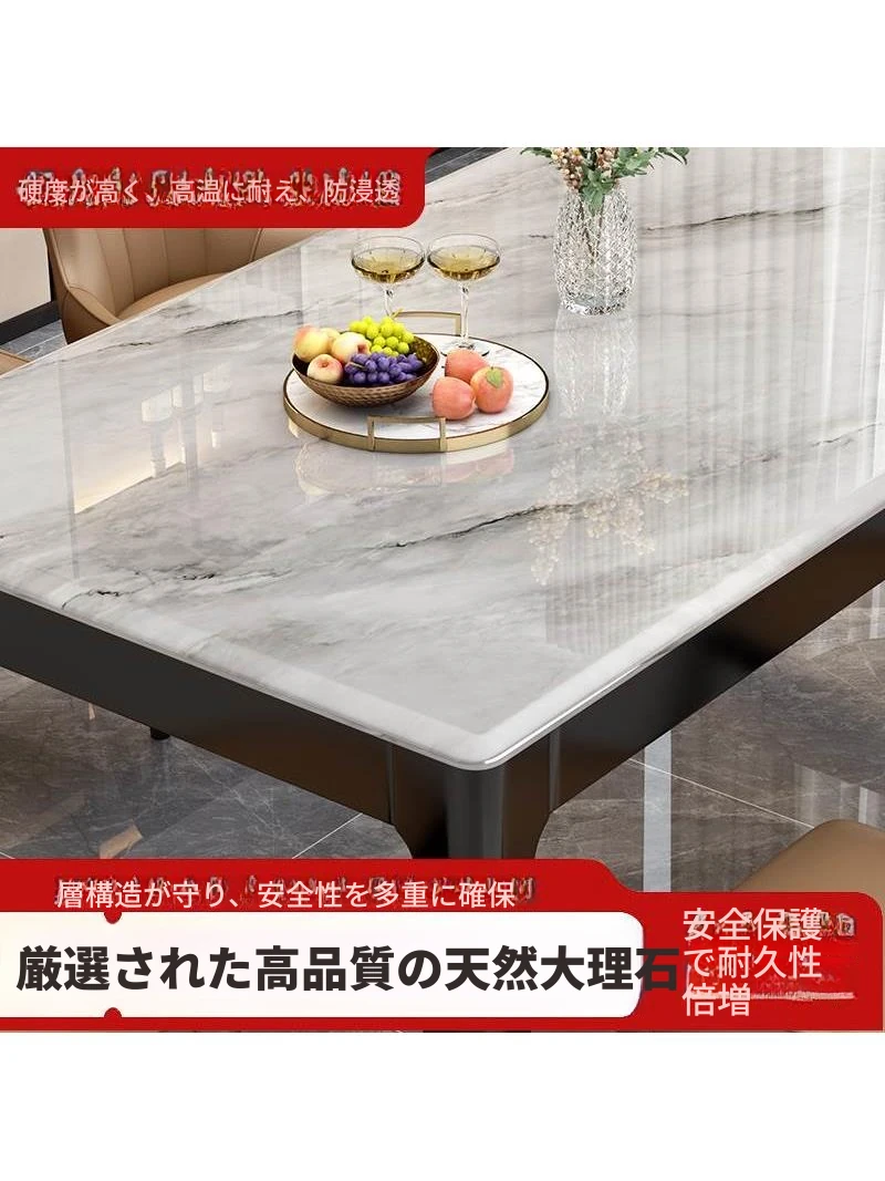 高級感溢れる天然大理石の長方形ダイニングテーブルセット!現代的でシンプルなデザイン、マイクロクリスタルストーンを使用した超高品質なテーブル。家族や友人との特別な食事に最適です!