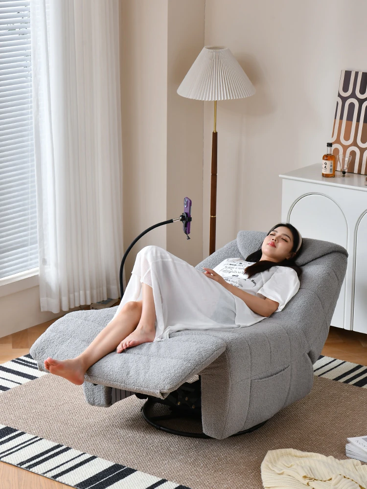 Versatile Electric Sofa with Rotating Caterpillar Design - Reclining Rocking Chair for Balcony and Living Room, Minimalist American Style Fabric Single Sofa
