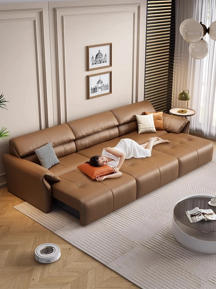 Modern Minimalist Napa Leather Electric Multifunctional Sofa Bed - Perfect for Small Living Rooms with Storage Chaise Lounge and First-Class Comfort