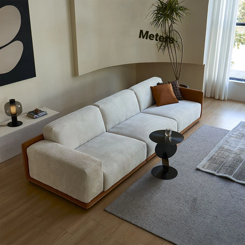 2025 New Retro Cream Style Small Apartment Living Room Sofa - Velvet Fabric, Easy-Clean, Straight-Line Design