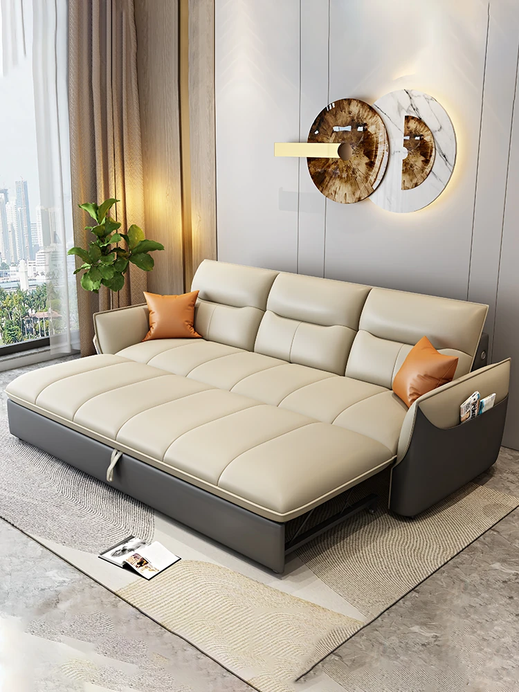 Genuine Leather Multifunctional Foldable Sofa Bed for Small Spaces - Elegant Modern Minimalist Living Room Couch