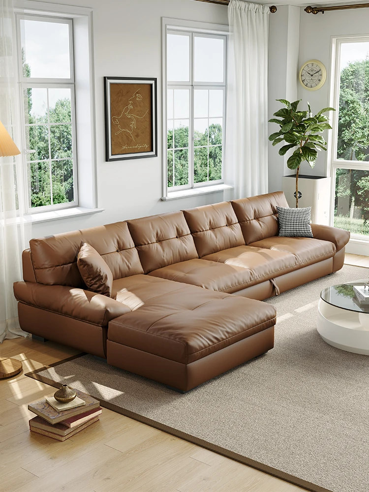 Modern Luxury L-Shaped Sofa Set in Genuine Top Grain Leather - Multi-functional Furniture for Small to Medium Living Spaces, Perfect for a Minimalist Aesthetic