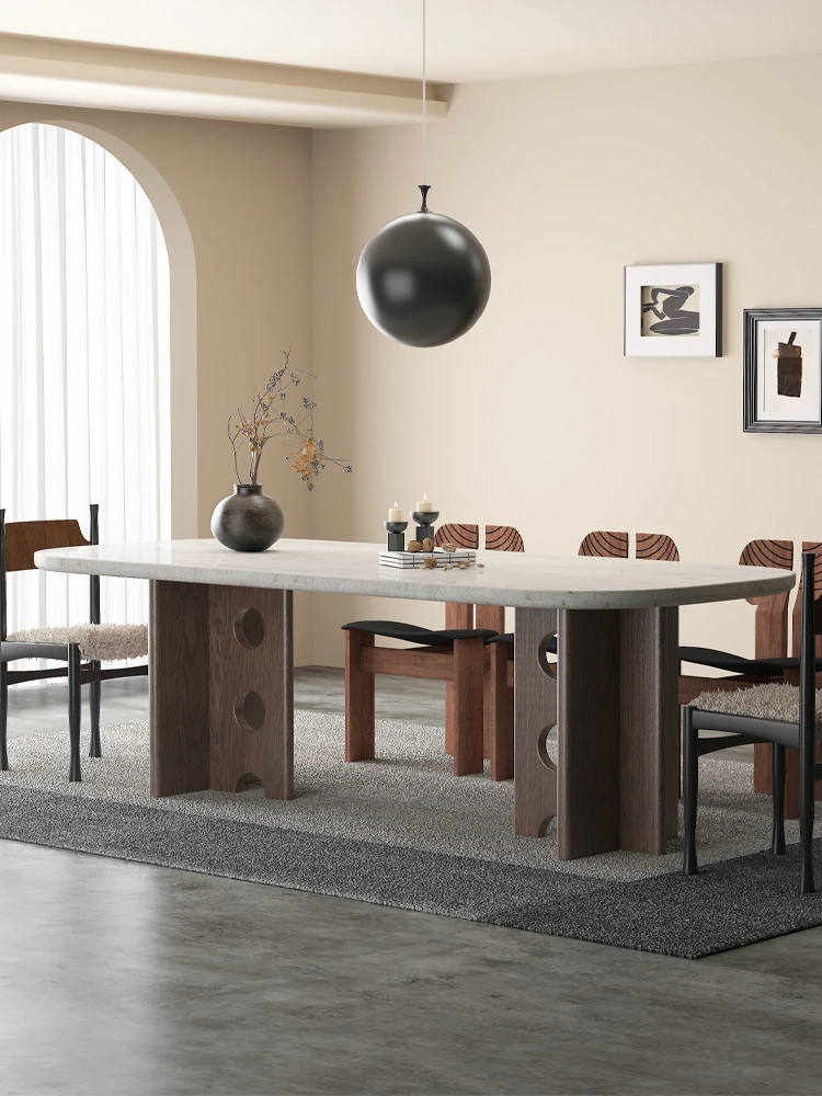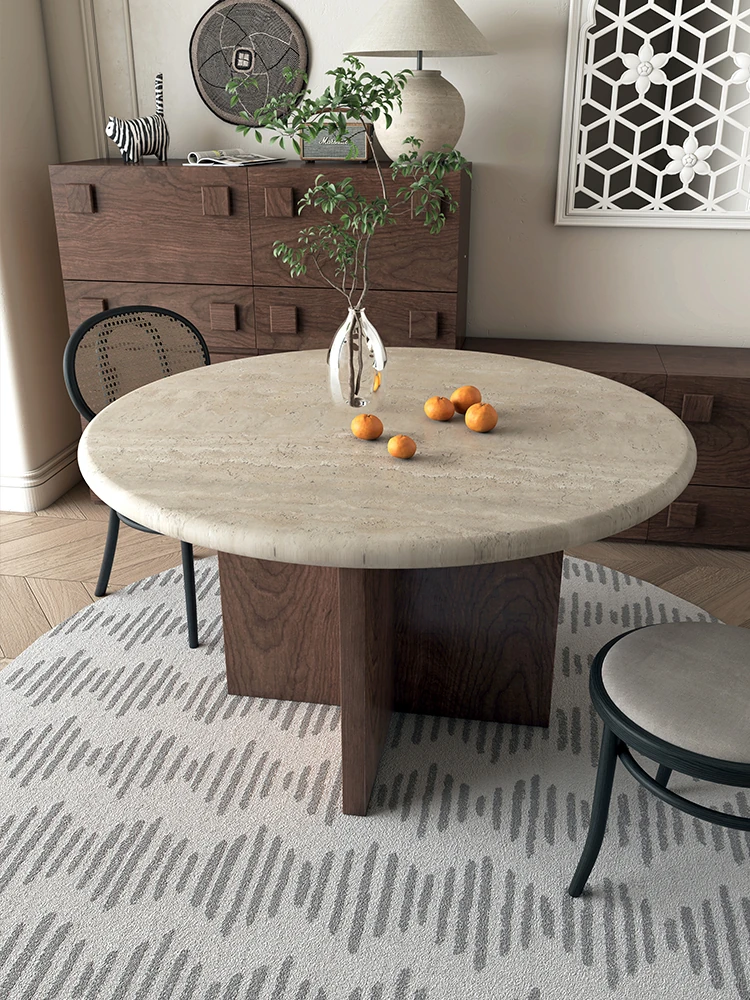 Imported French Vintage Natural Cavestone Dining Table - Modern Minimalist Luxury High-End Round Marble Table for Your Home