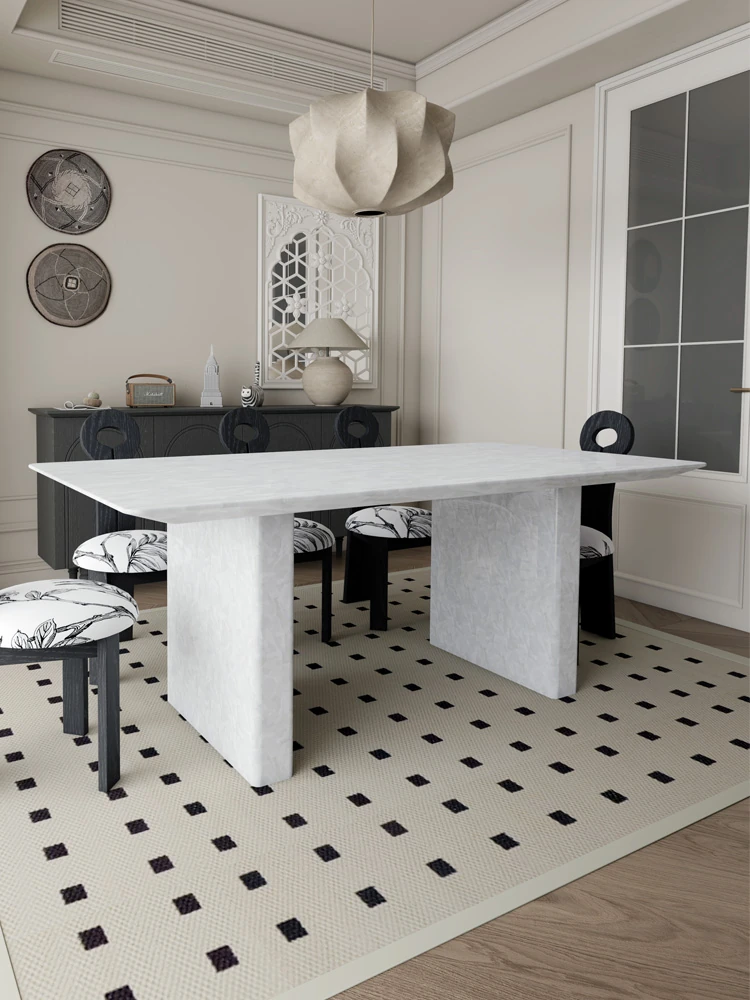 Elegant French Vintage White Ice Jade Marble Dining Table – High-End Modern Luxury for Home, Perfect for Living Room, Stylish and Minimalist Design