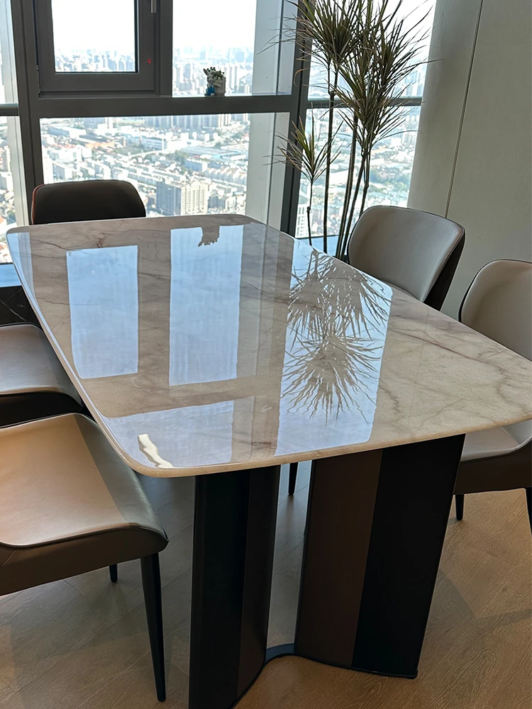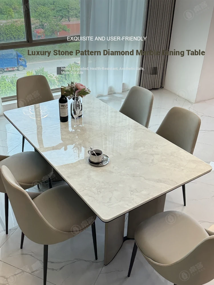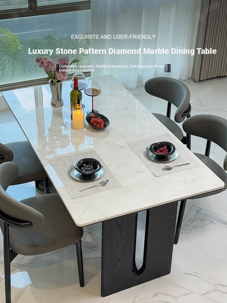 Modern Italian Luxury Micro-Crystal Stone Dining Table - Premium Rectangular Design with Natural Ultra-Crystal Marble Finish, Perfect for Elegant Dining Experiences.