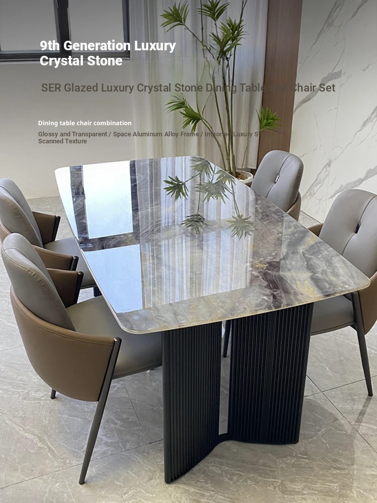 Luxury Microcrystal Stone Dining Table and Chairs - Natural High-End Super Crystal Stone, Elegant Marble Design for a Modern Aesthetic