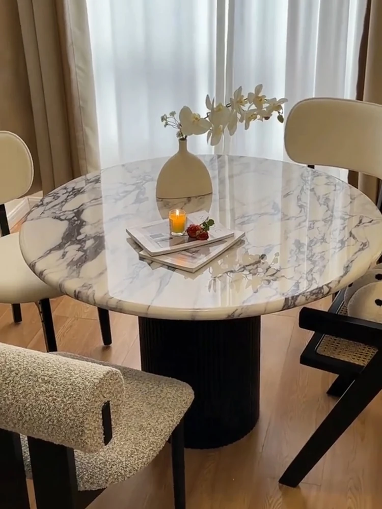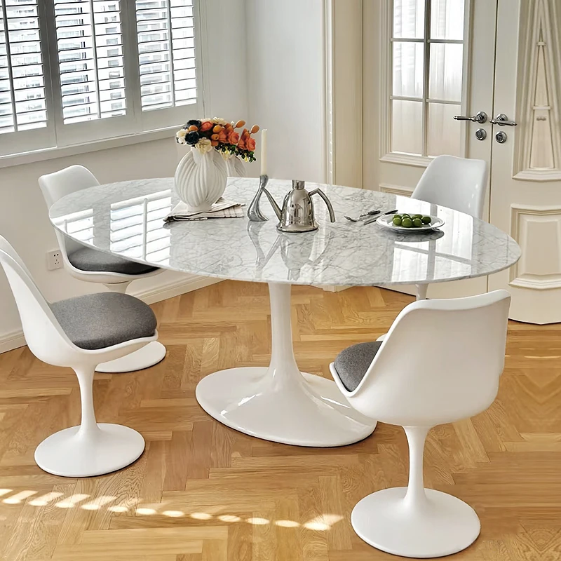 2025 New French Cream Style Tulip Dining Table Set - Luxurious Yet Affordable Natural Marble Round Table and Chairs for Small Spaces