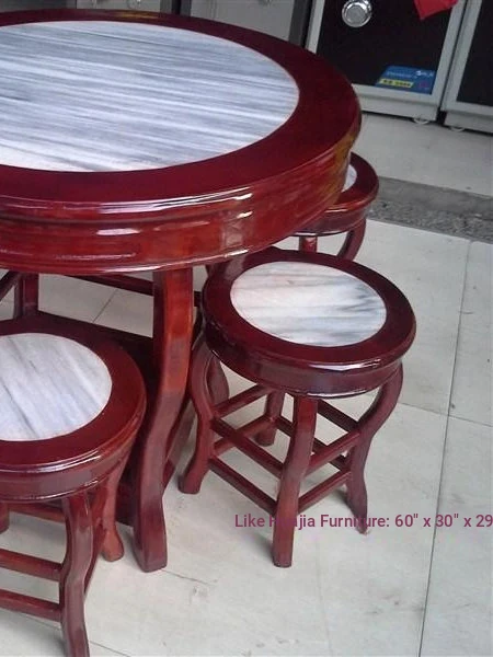Natural Stone Marble Round Table with 4 Stools for Dessert Shops, Snack Bars, and Fast Food Restaurants - 80cm Diameter, Perfect for Cozy Dining Experiences