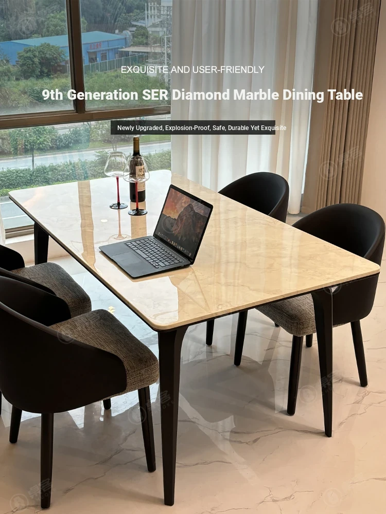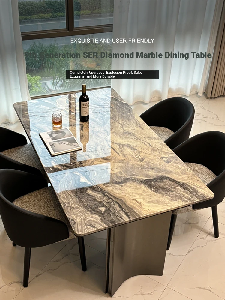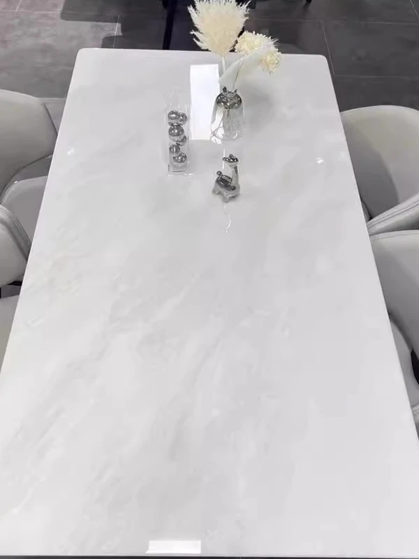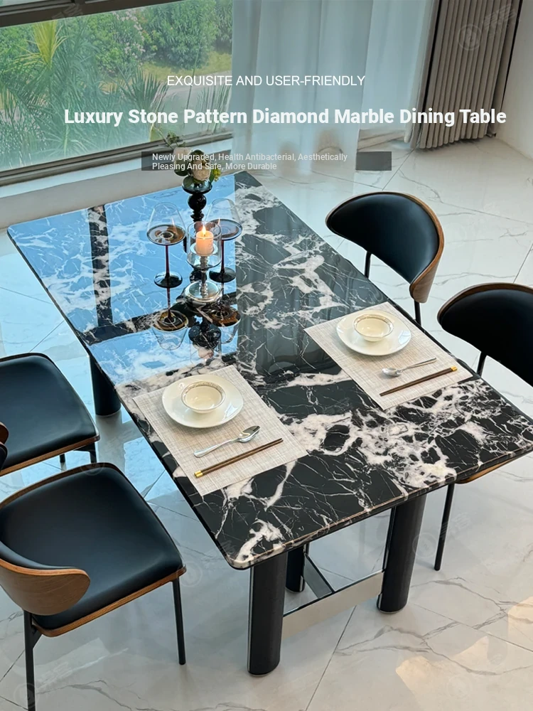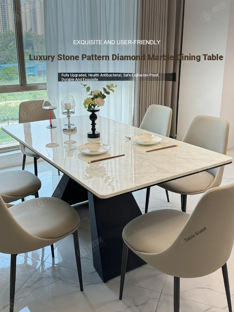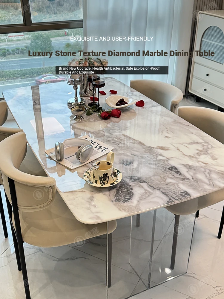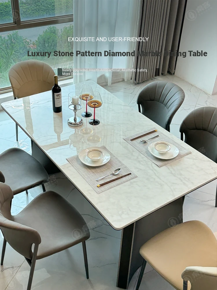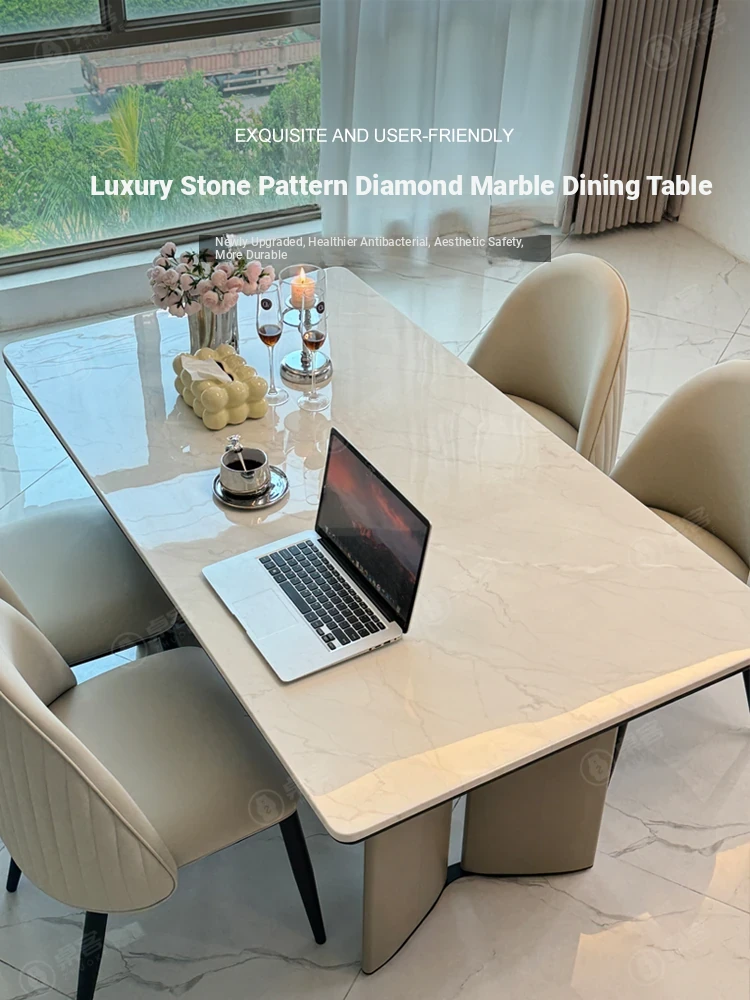 Luxury Rectangular Marble Dining Table - Elegant Home Décor with Premium Natural Microcrystalline Stone and Super Crystal Platinum Diamond Finish. Perfect for Sophisticated Dining Experiences.