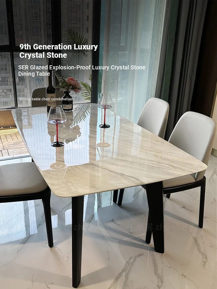 Elegant Luxury Rectangular Marble Dining Table Set - Premium Quality Natural Stone & Ultra-Crystal Micro-Crystal Table for a Sophisticated Home Dining Experience