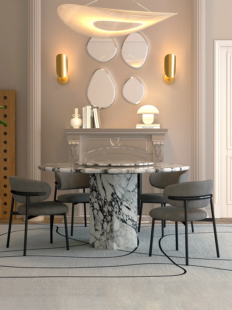 Italian Minimalist Natural Jazz White Marble Round Dining Table and Chairs - Modern Simple Luxury Home Dining Furniture