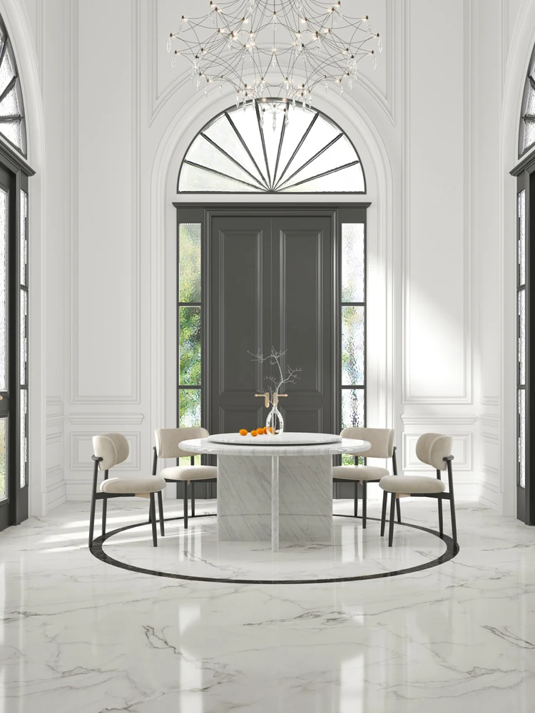 Italian Minimalist Natural Marble Dining Table - Luxurious Milan White Jade Stone for High-End Villas and Mansions