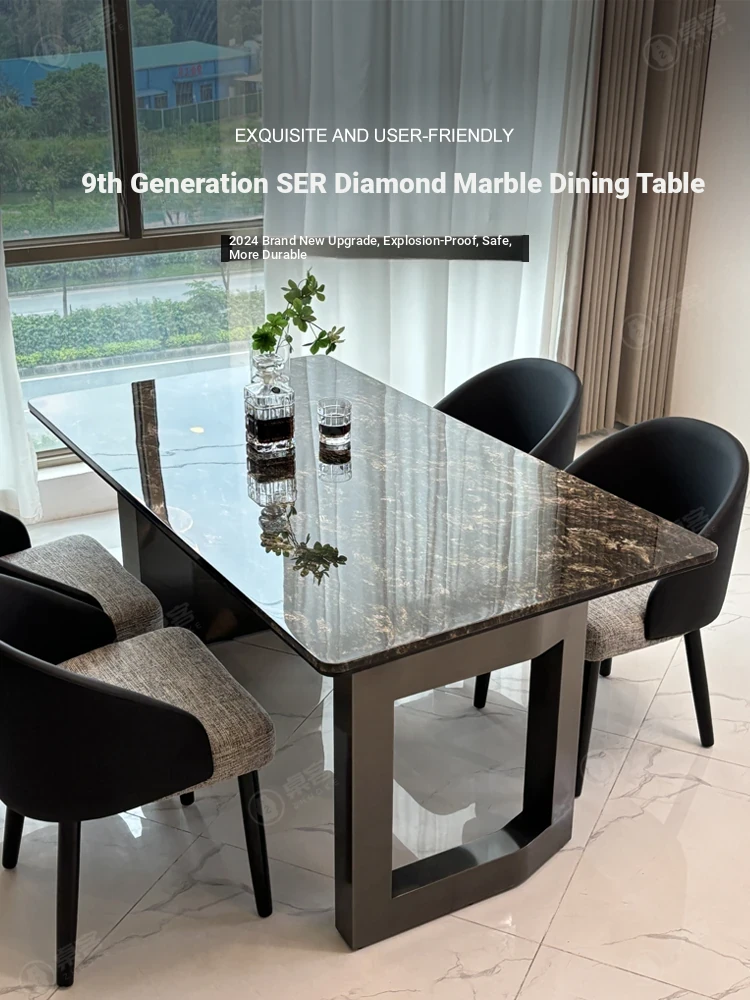 Elegant Marble Dining Table Set - Luxurious Natural Stone and Ultra-Crystal Stone, Rectangular Design, High-End Dining Experience with Premium Quality
