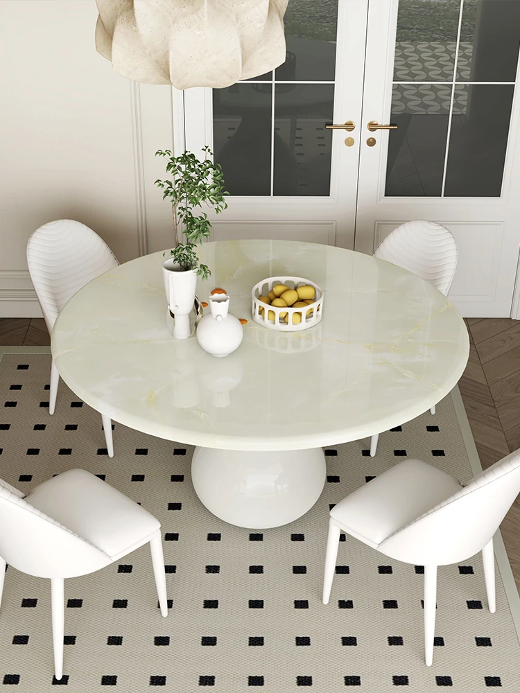 Imported Natural White Ice Jade Marble Dining Table - Elegant Cream Style, Solid Wood Round Table for Small Spaces, Perfect for Home Luxury Dining Experience