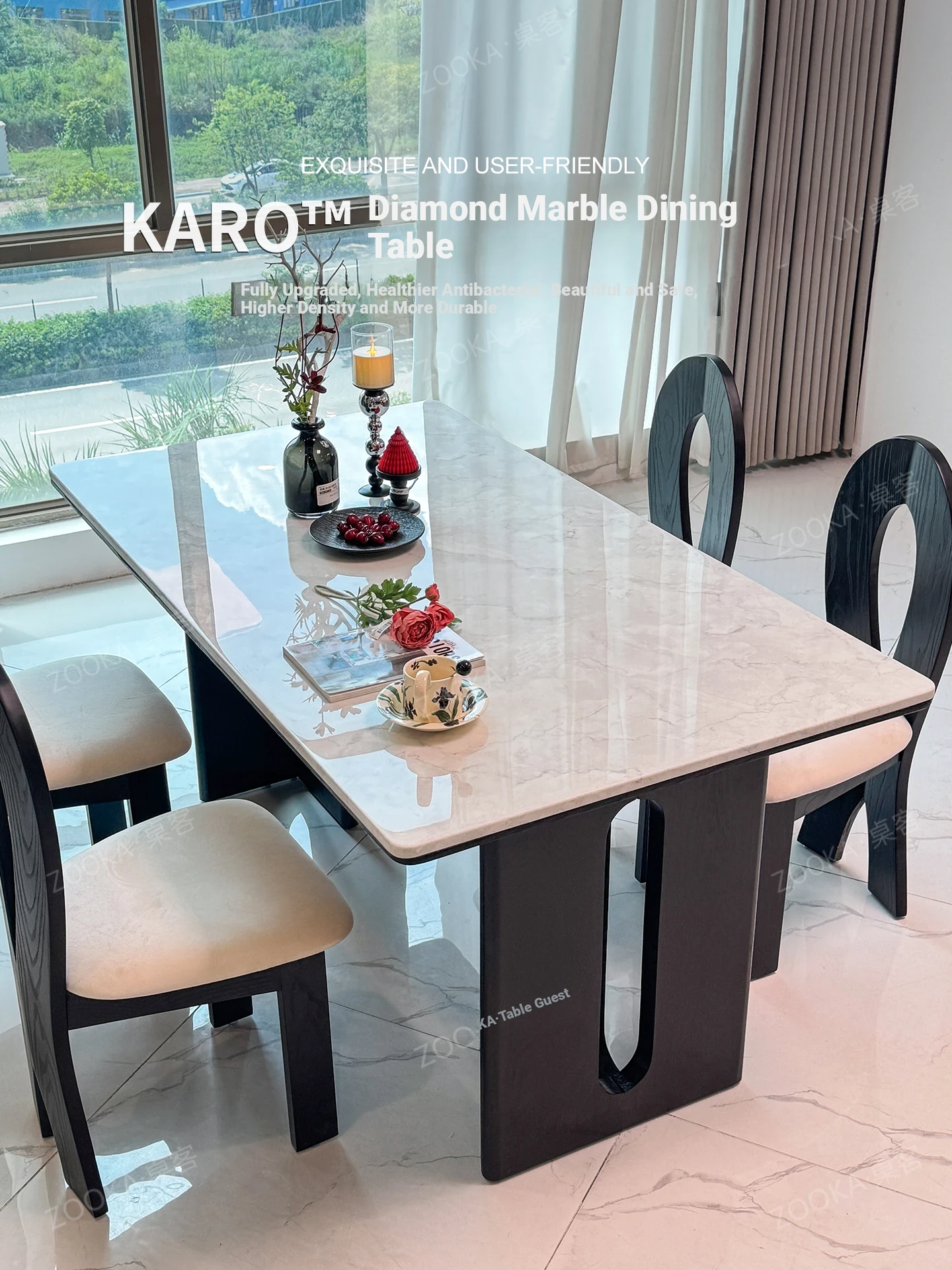 Creamy Marble Dining Table and Chair Set - Luxurious Small Space Design with Micro-Crystal and Super-Crystal Stone - Perfect for Stylish Dining in Compact Homes - Model A2