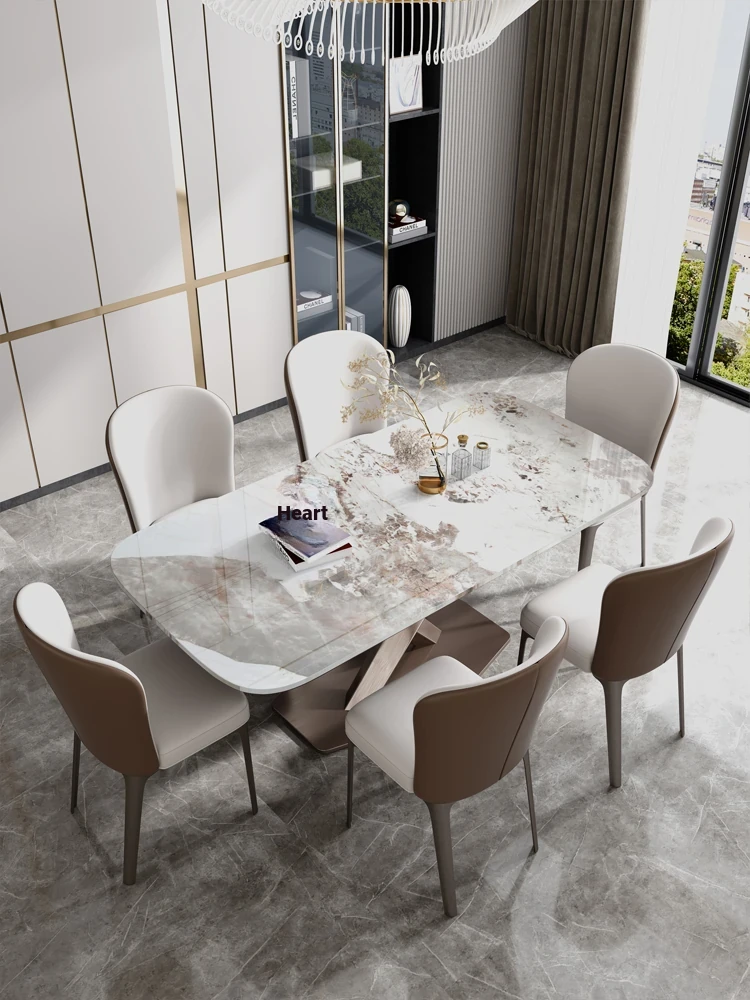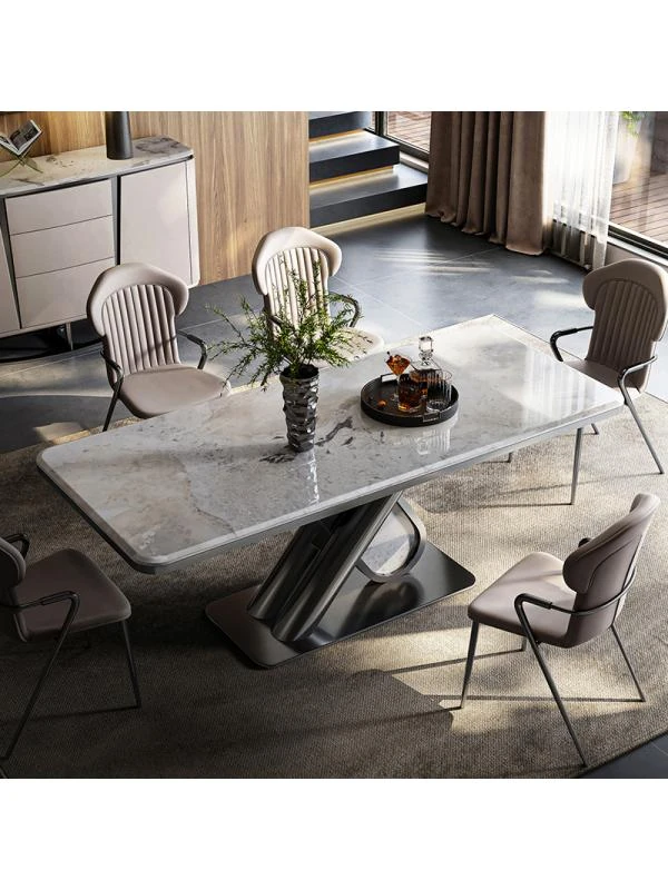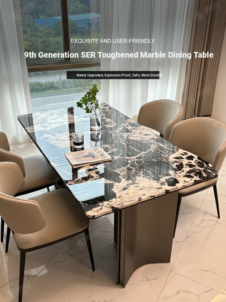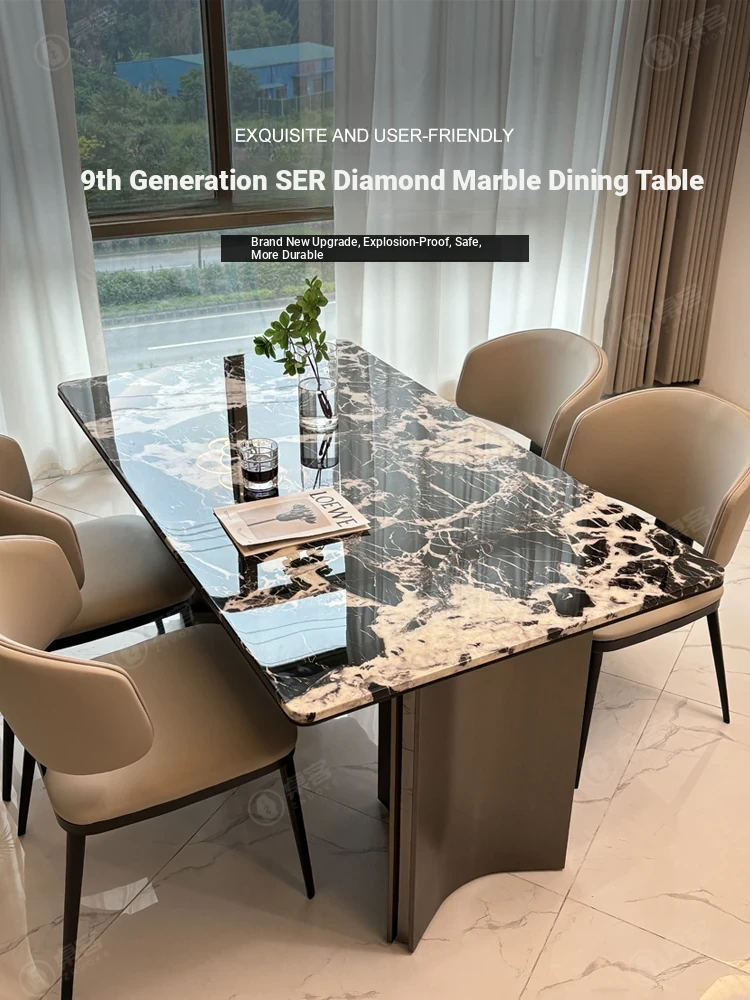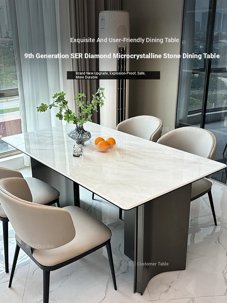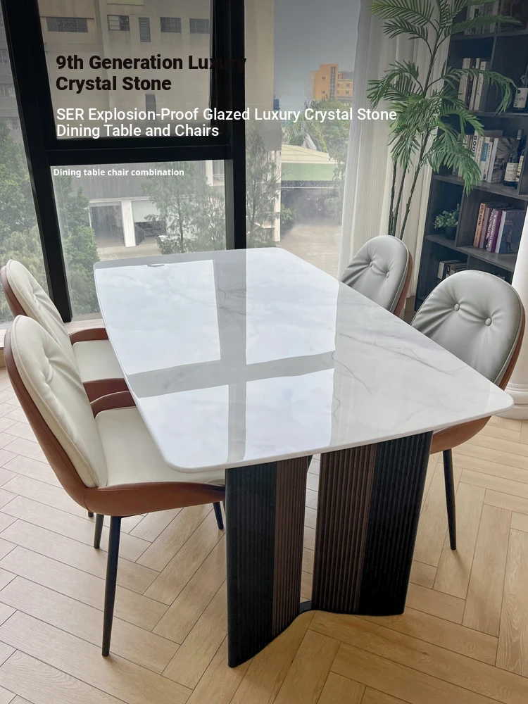 Luxury Microcrystalline Stone Dining Table and Chair Set - High-End Modern Minimalist Design with Natural Marble and Ultra-Crystal Stone - Perfect for Elegant Dining Experiences