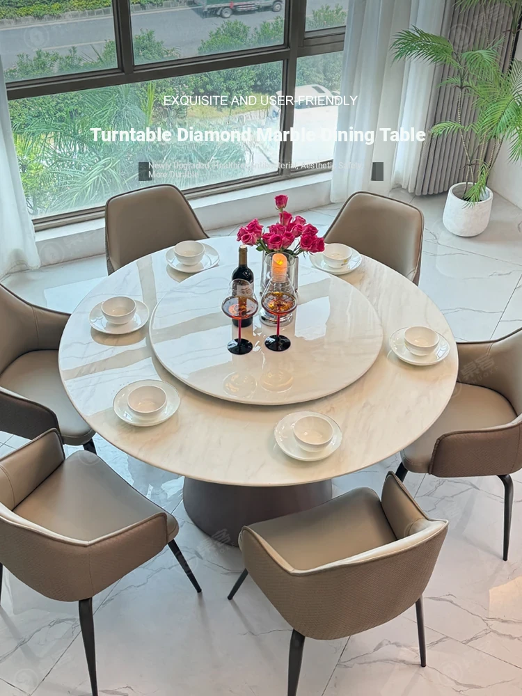 Elegant Marble Round Dining Table with Rotating Base - High-End Modern Minimalist Natural Microcrystalline Stone, Luxurious Super Crystal Stone Dining Table