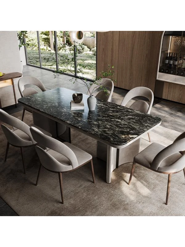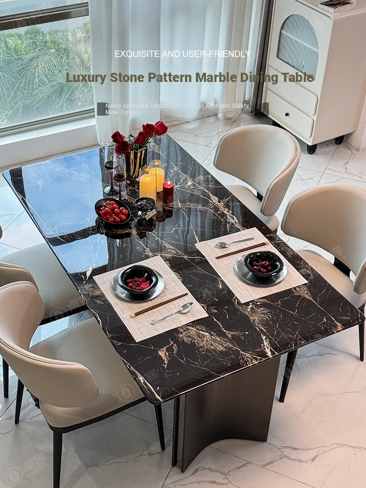 Luxury Marble Dining Table with Elegant Stone Texture - Modern Minimalist Design in Natural Microcrystal Stone and Super Crystal Stone, Bvlgari Black Rose A2
