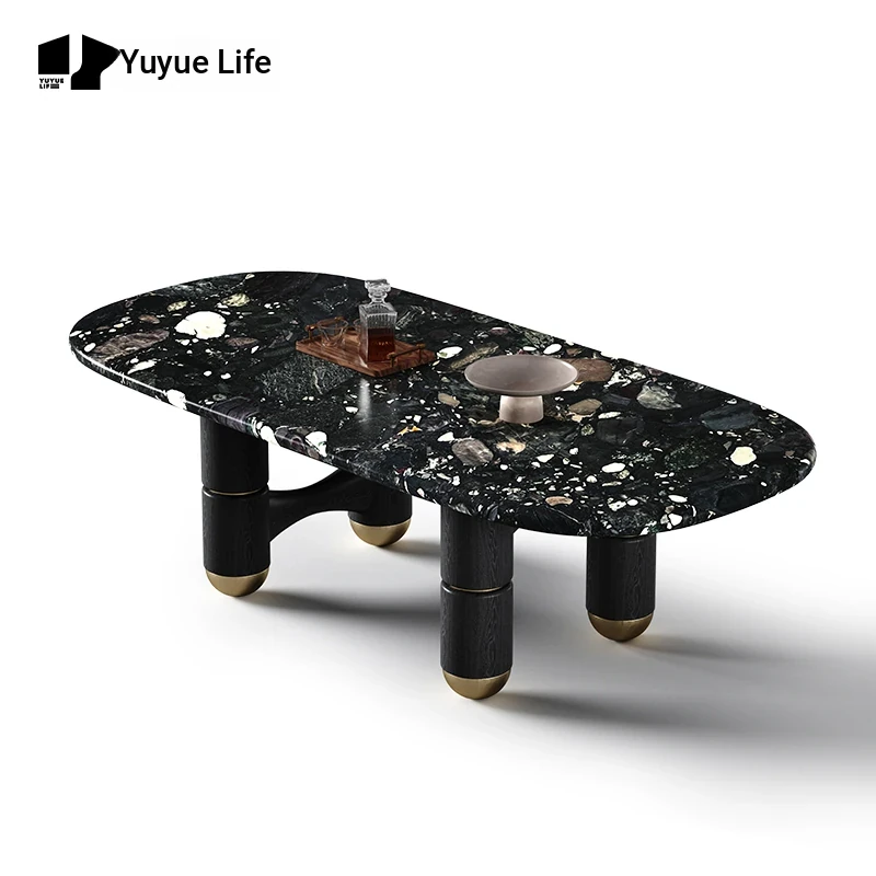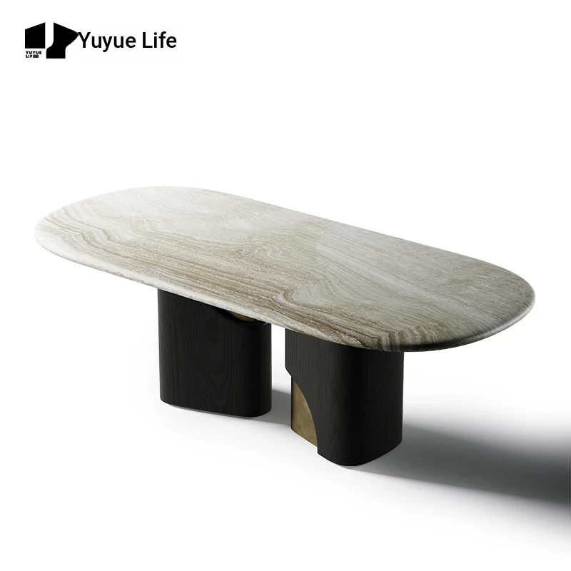 Yuyue Life Italian Minimalist Natural Stone Dining Table - Elegant Light Luxury Island Table for Spacious Villas, Modern Simplicity at Its Finest