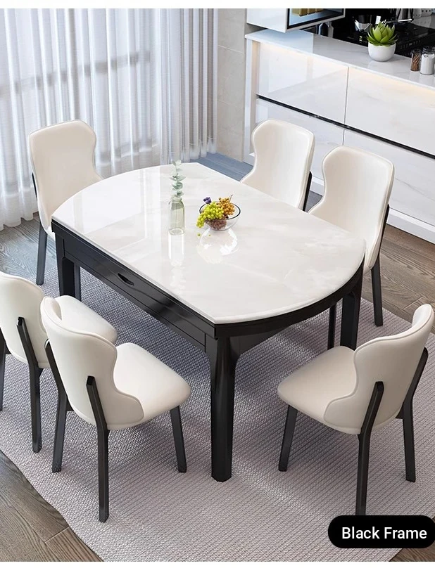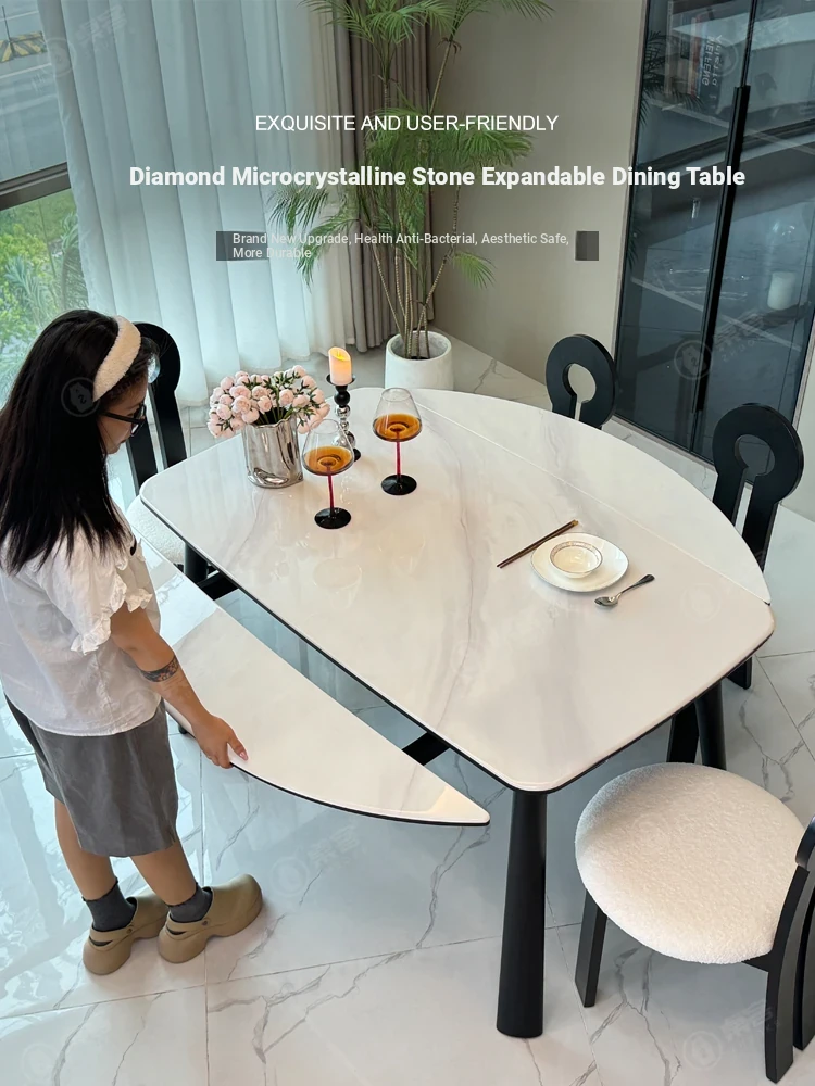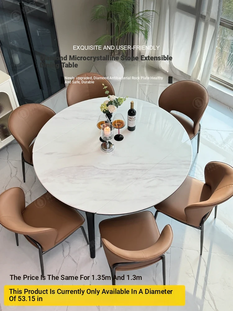 Natural Marble Microcrystalline Dining Table - Modern Minimalist Expandable Round Table for Small Living Rooms, Perfect for Home Use with Solid Wood Construction