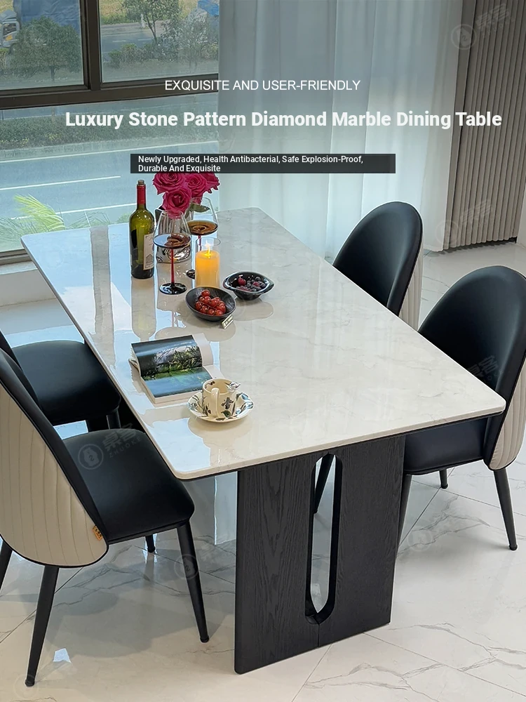 Vintage Marble Dining Table Set - Rectangular Modern Retro Natural Microcrystal Stone Luxury Solid Wood Dining Table for Small Spaces