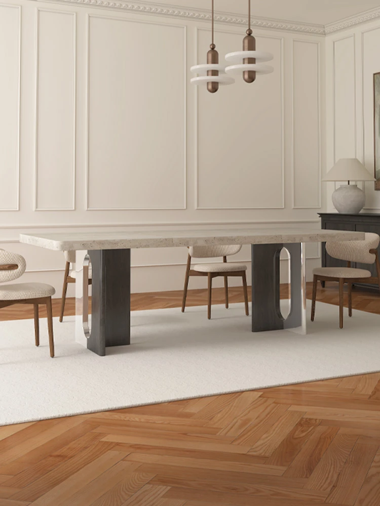 French Vintage Marble Dining Table - Natural Imported Stone, Luxurious High-End Modern Minimalist Rectangular Table for Home Use.