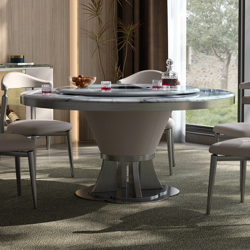 Elegant Natural Marble Dining Table with Minimalist Electric Design – Round Table Set with Rotating Tray for Home Use, Perfect for Modern Living Spaces