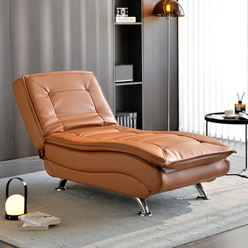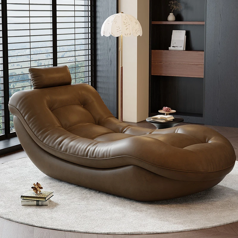 Italian Vintage Genuine Leather Single Chaise Lounge - Modern Minimalist Lazy Chair for Balcony and Bedroom, New Arrival 2025