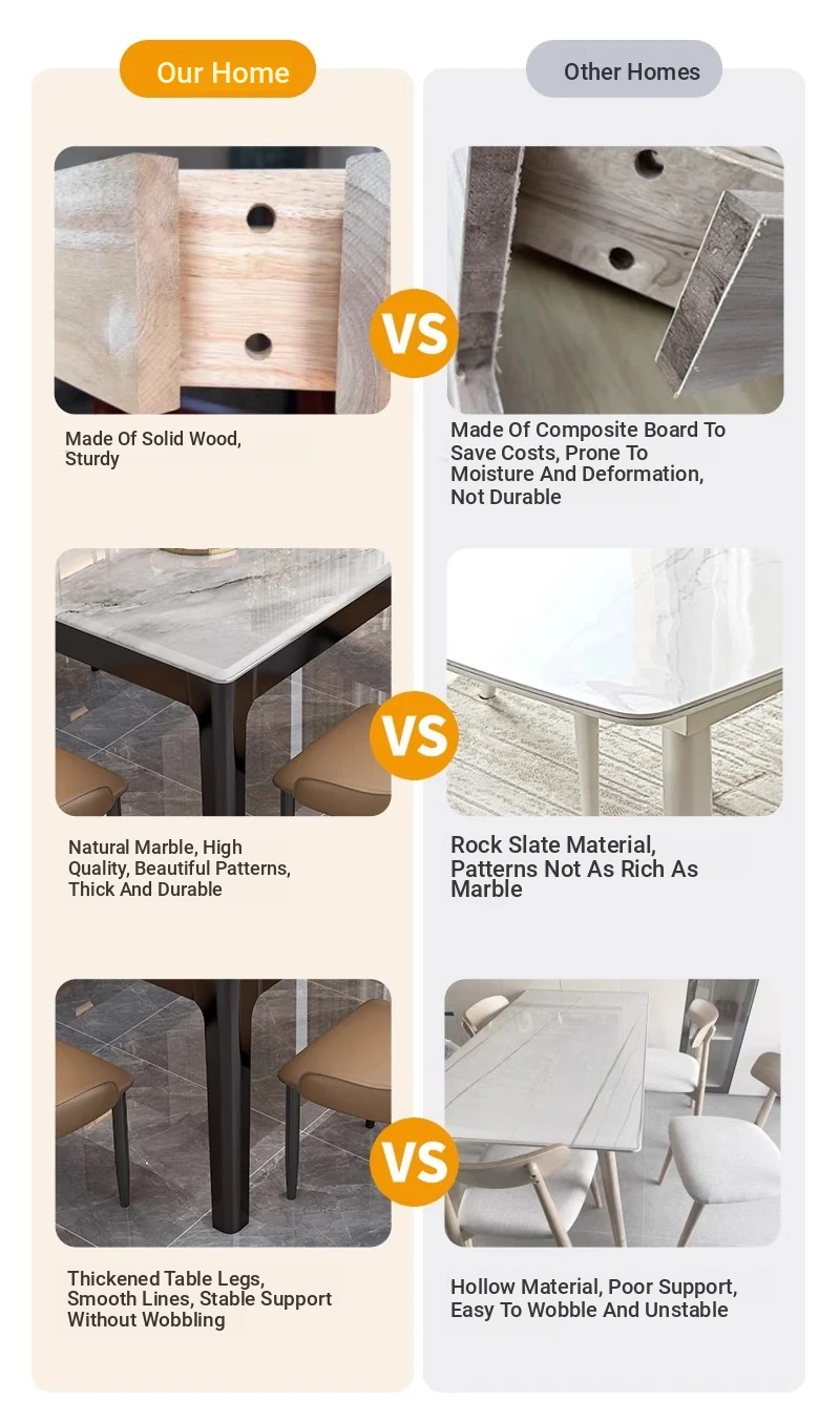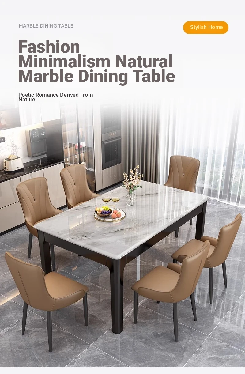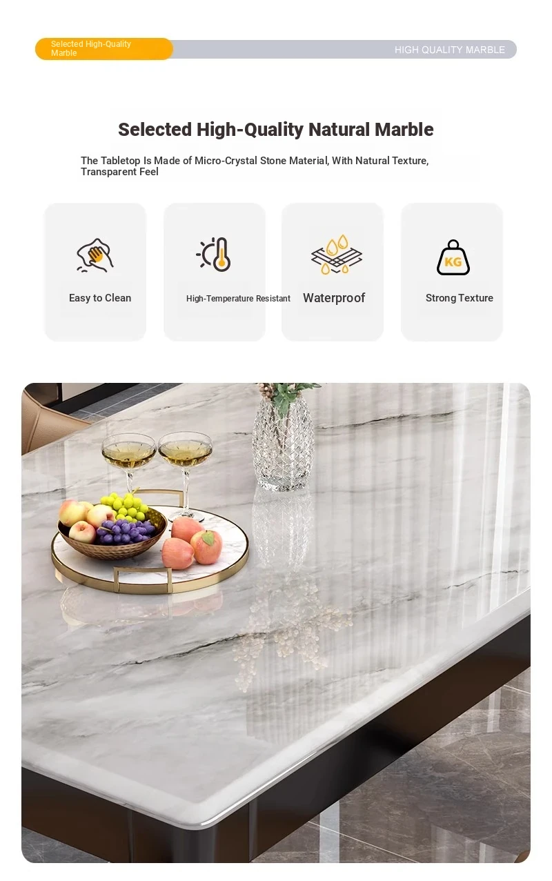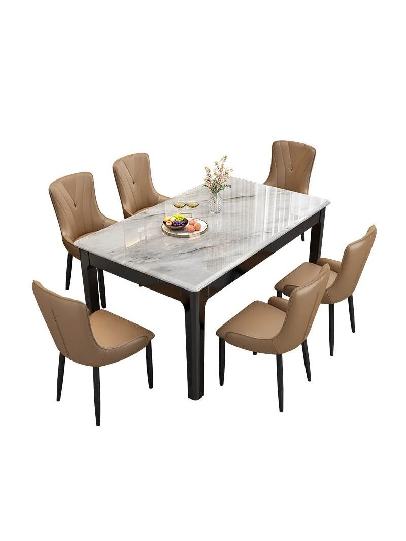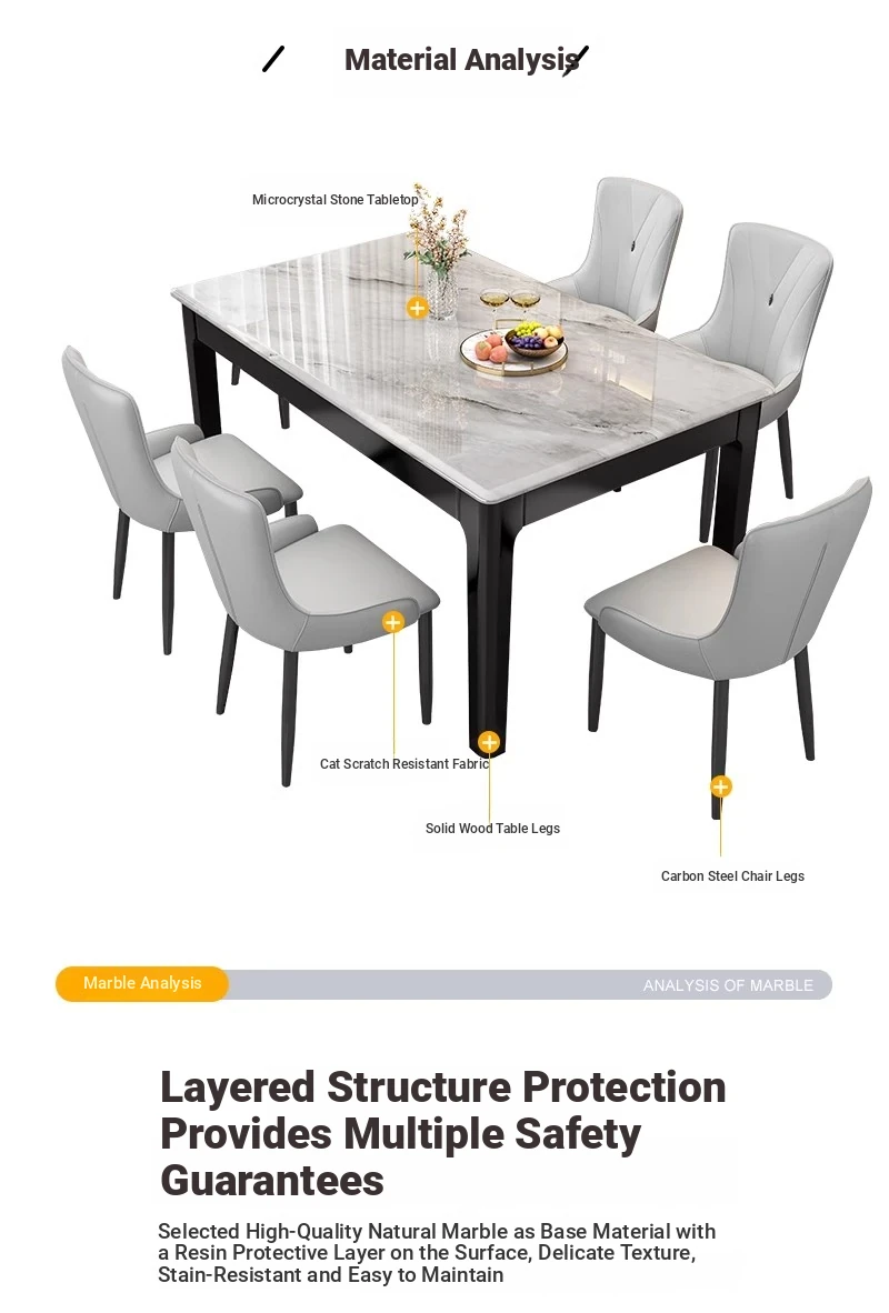 Elegant Modern Rectangular Dining Table and Chair Set with Microcrystalline Stone - Perfect for Small Spaces, Featuring Natural Marble Design for a Luxurious Touch in Your Home.