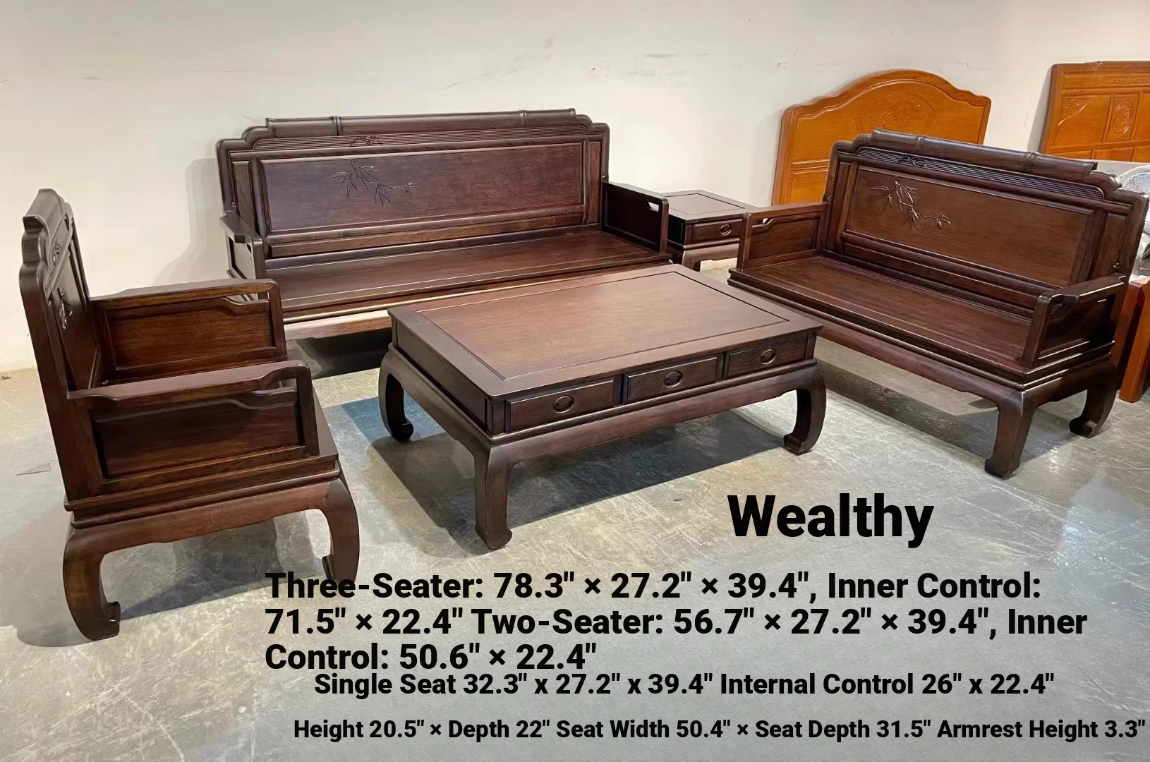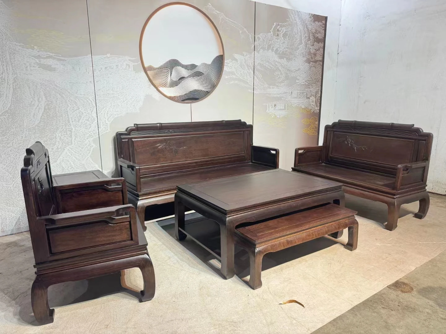 Imported Pineapple Wood Red Sandalwood Sofa Set - Luxurious New Chinese Style Solid Wood 5-Piece Sofa Set Directly from Manufacturer