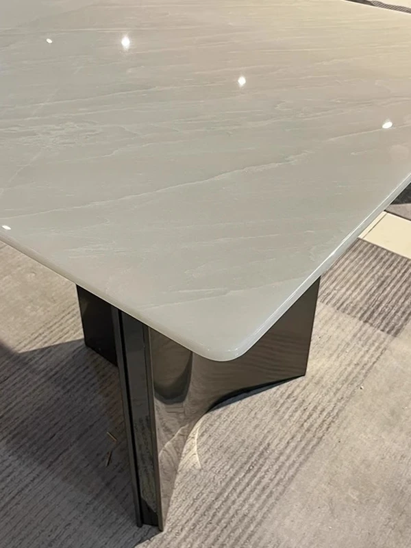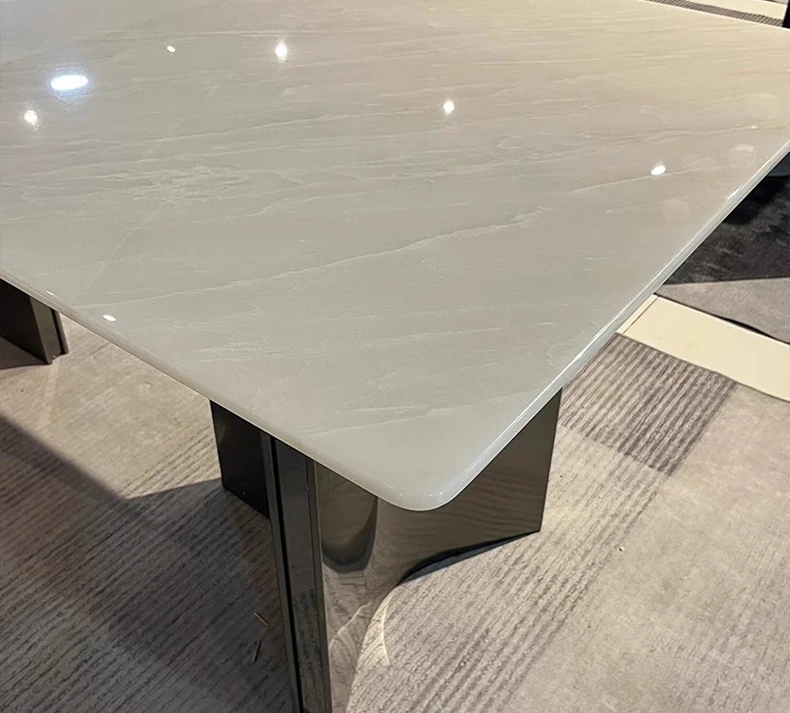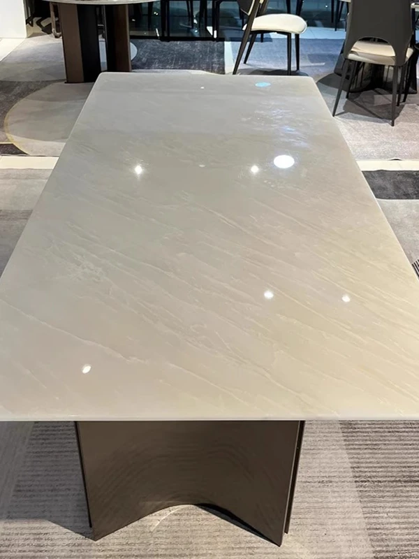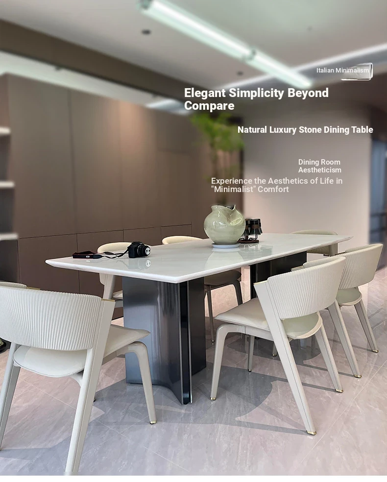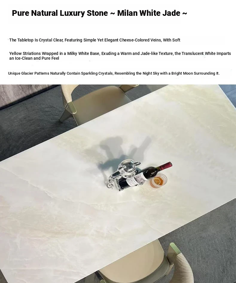 Italian Minimalist Natural Marble Dining Table - Luxurious Milan White Jade Stone for High-End Villas and Mansions