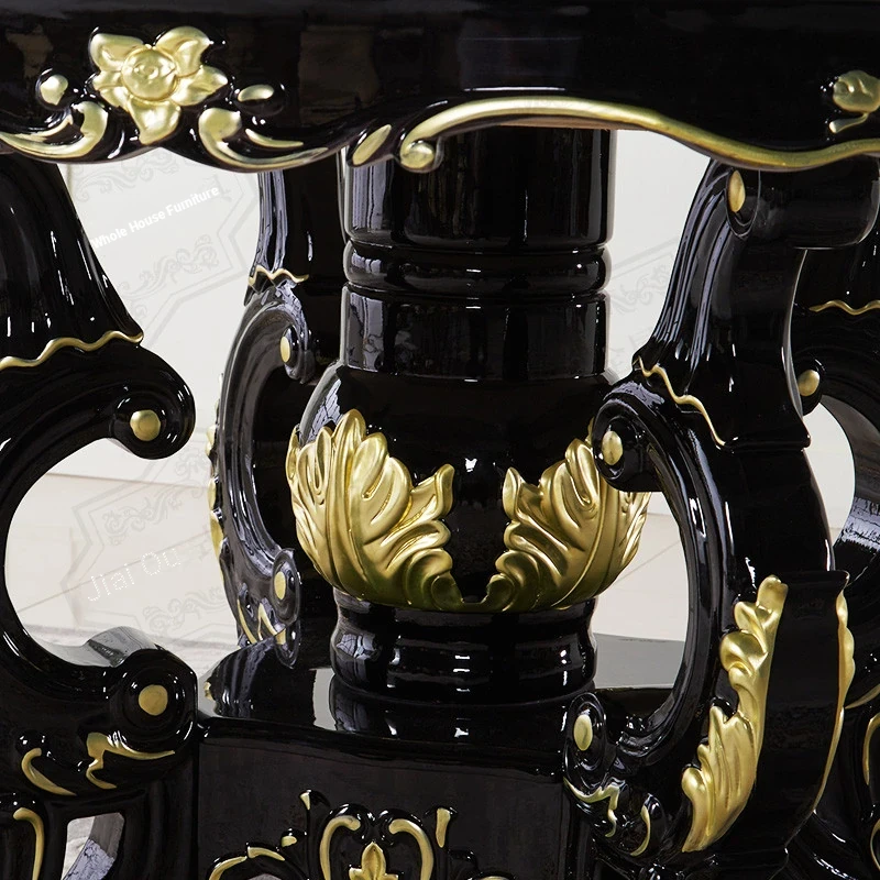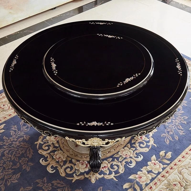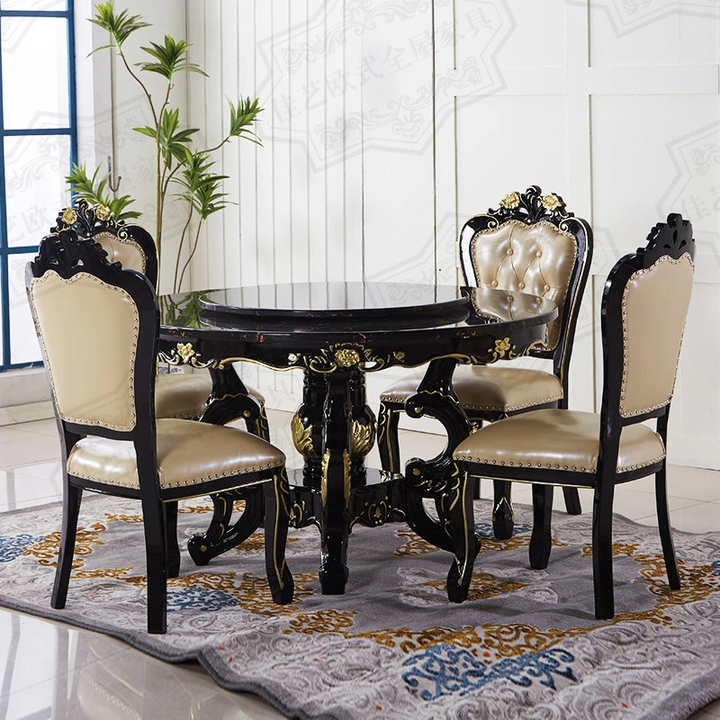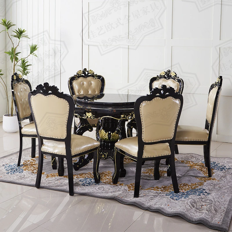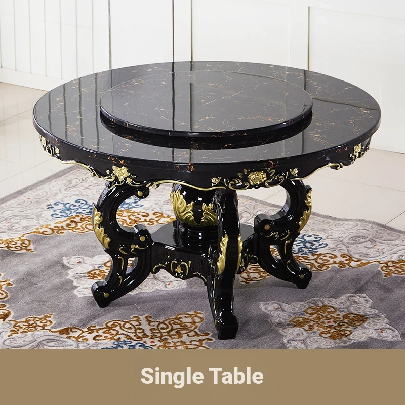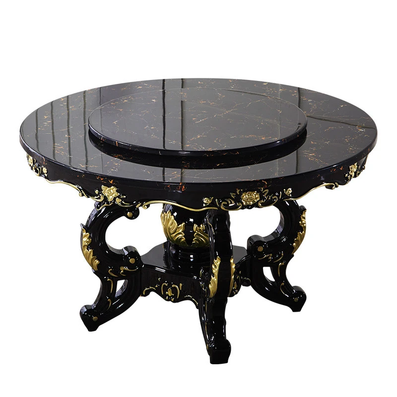 Luxurious European Style Solid Wood Round Dining Table with Marble Top - Elegant Carved American Design for 6 People - Perfect for Home Use, Stylish Dining Experience