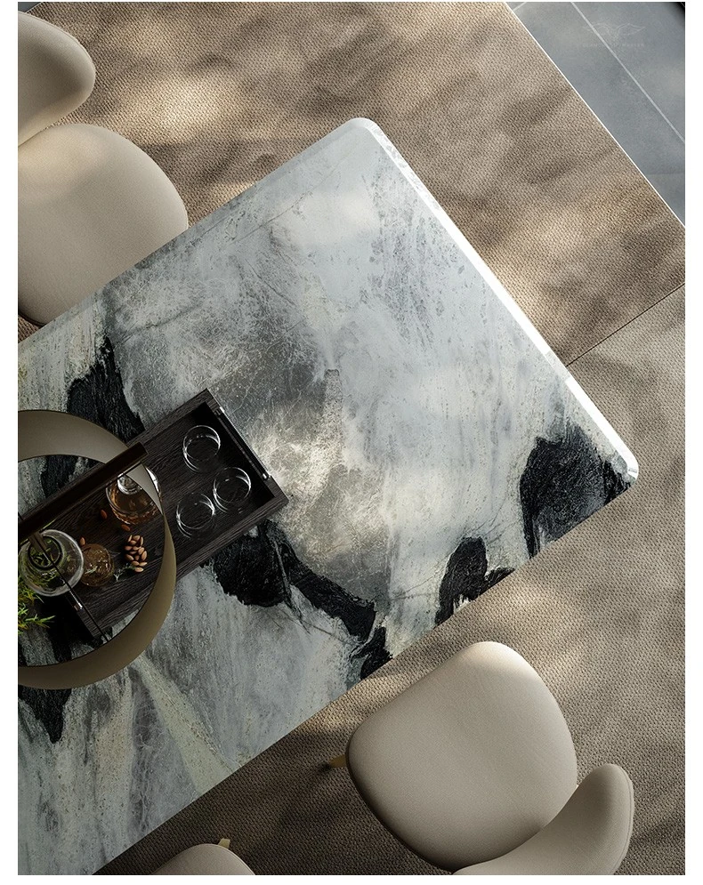 Luxury Italian Minimalist Dining Table for Modern Villas - Elegant Long Natural Marble Table Perfect for Spacious Living Areas