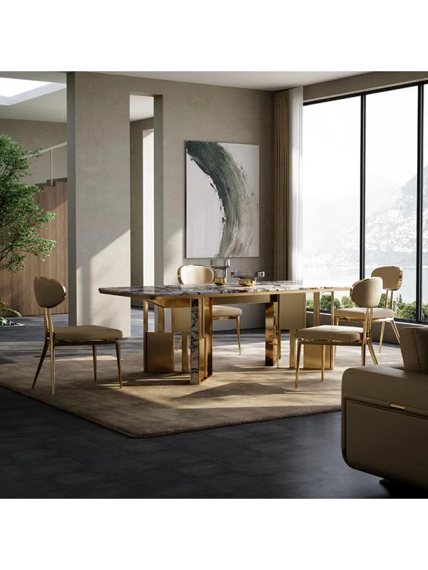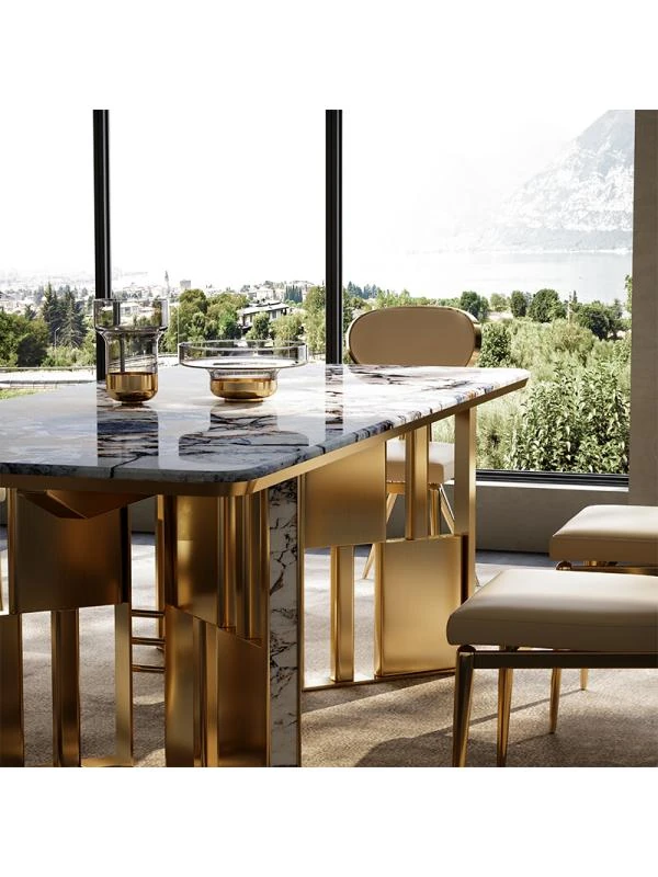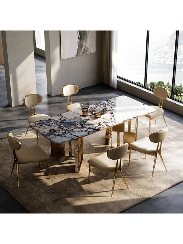 Luxury Natural Marble Dining Table for Villas - Creative Rectangular Design for Spacious Dining Rooms - New Arrival by Top Designers
