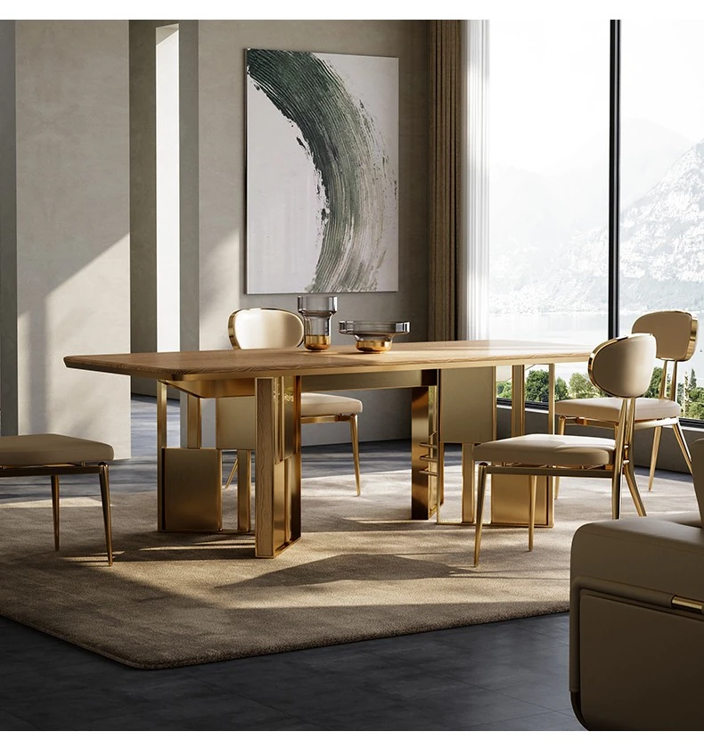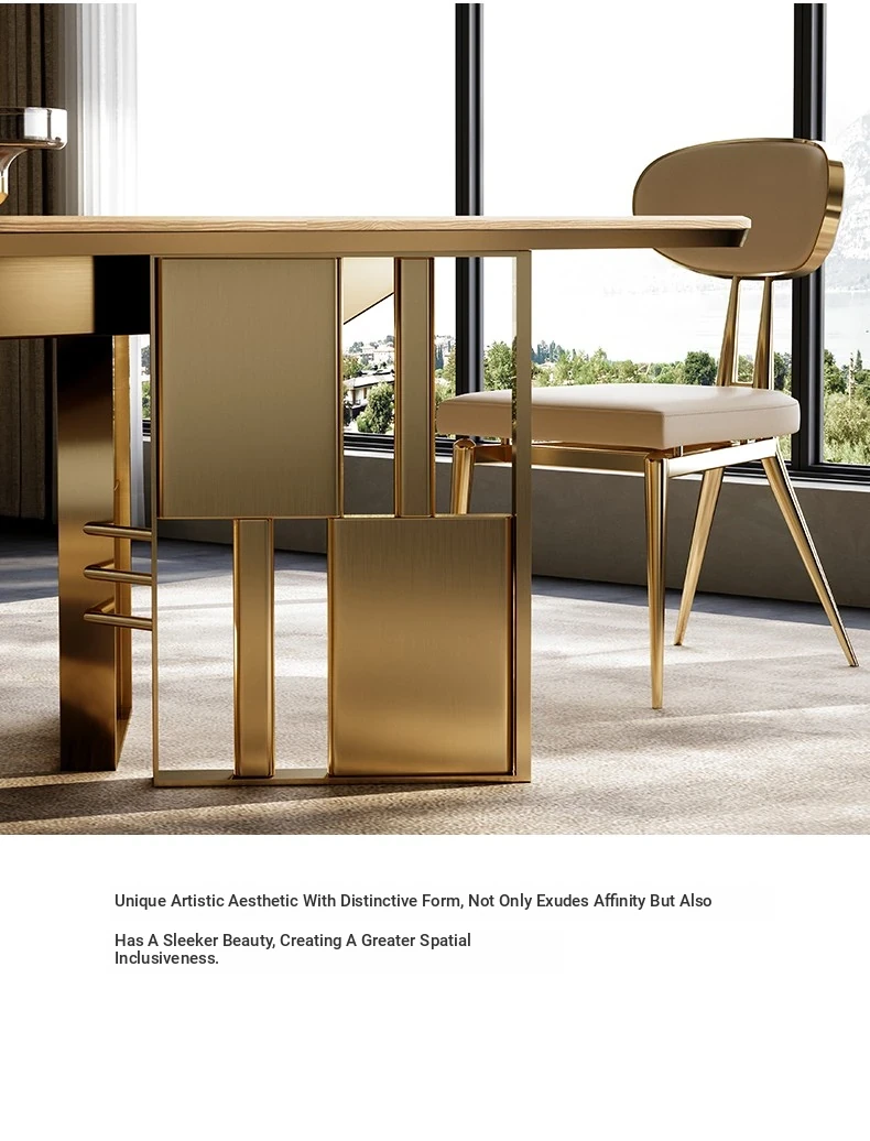 86.61 in long dining table/elephant White natural luxury stone/champagne gold