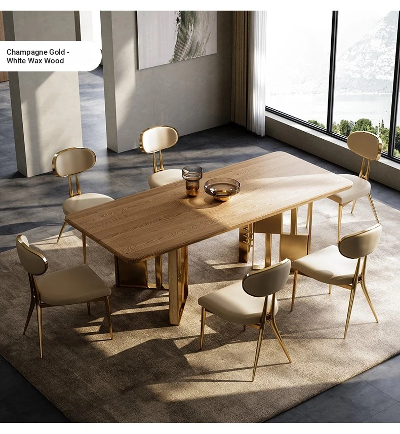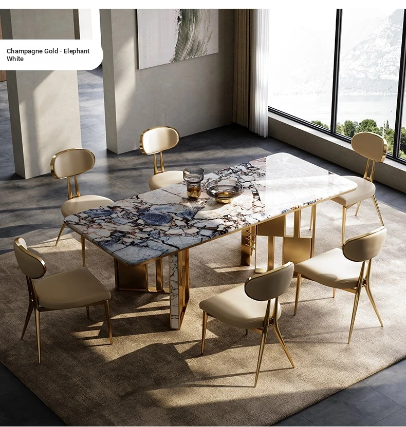 86.61 in long dining table/elephant White natural luxury stone/Champagne Gold +028 dining chair * 6
