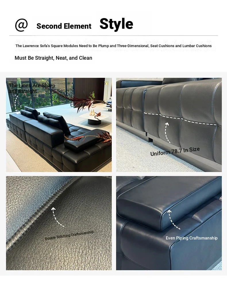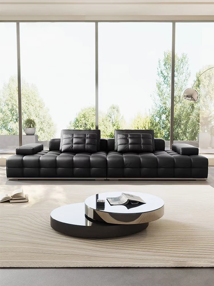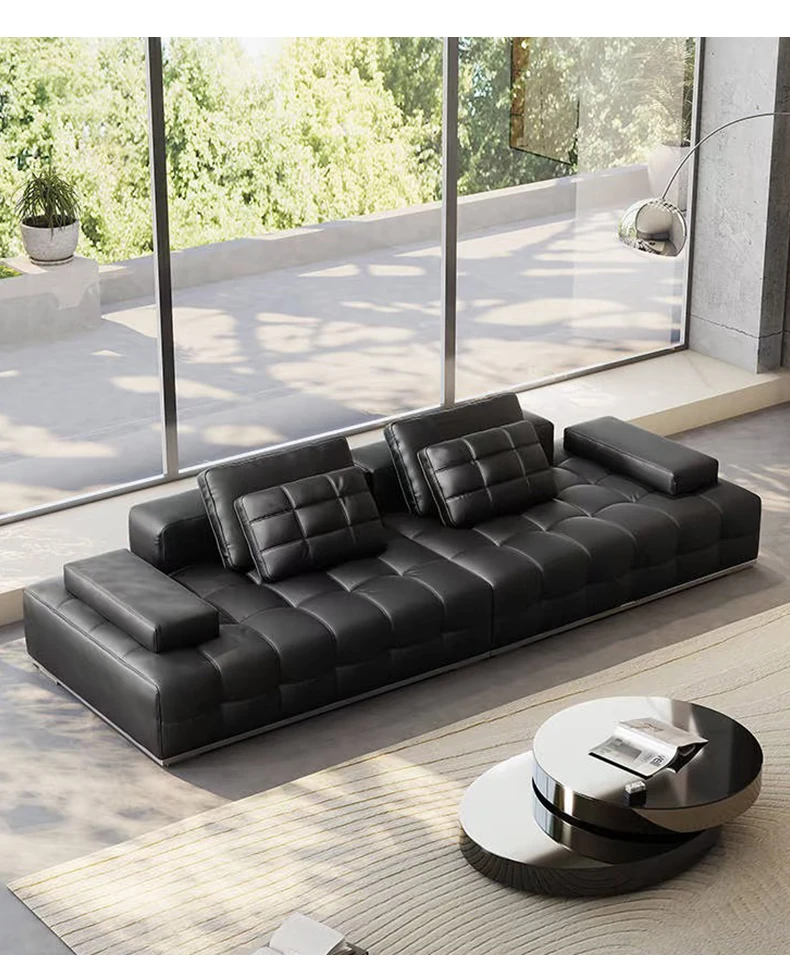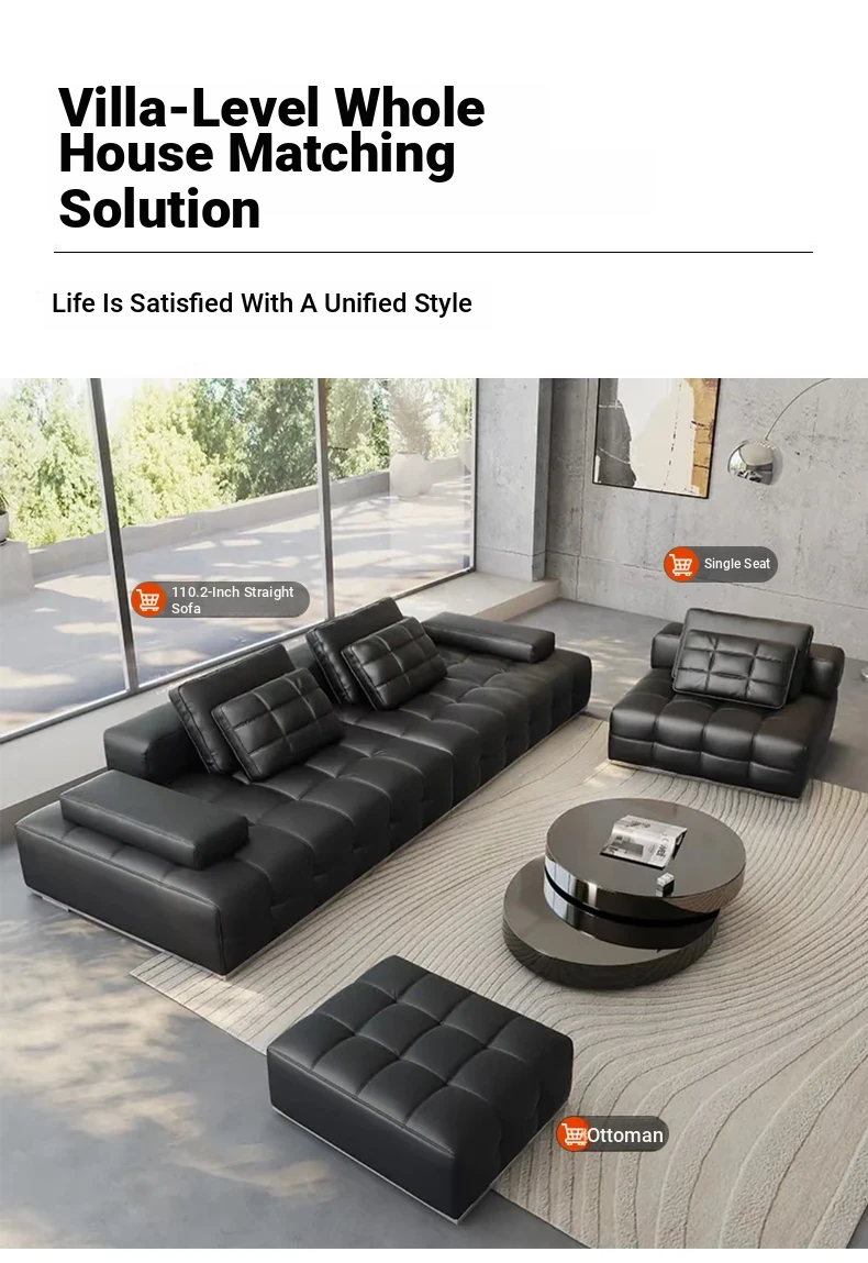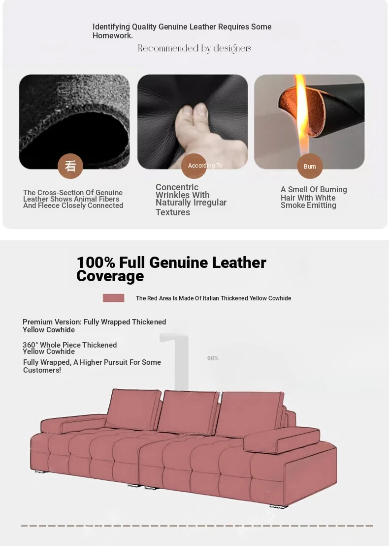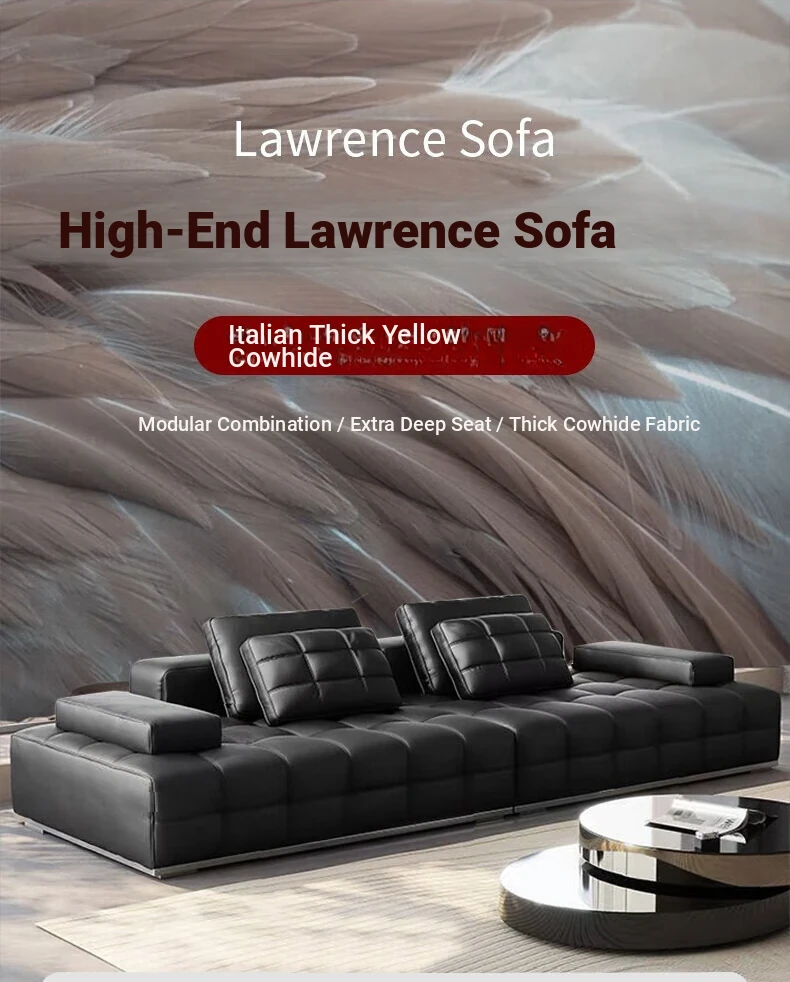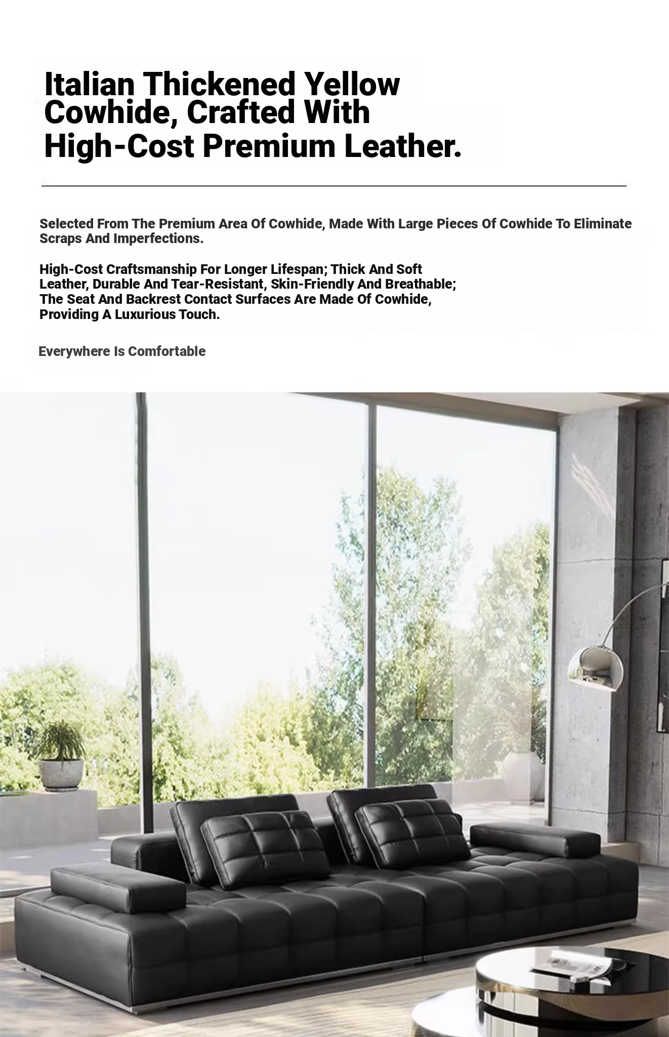 Milan Italian Minimalist Lawrence Genuine Leather Sofa - Luxurious Top Grain Leather Modular Sofa for Villas and Spacious Living Rooms