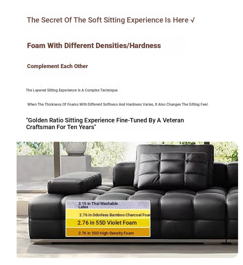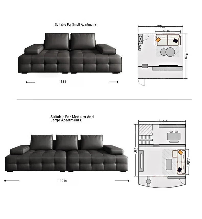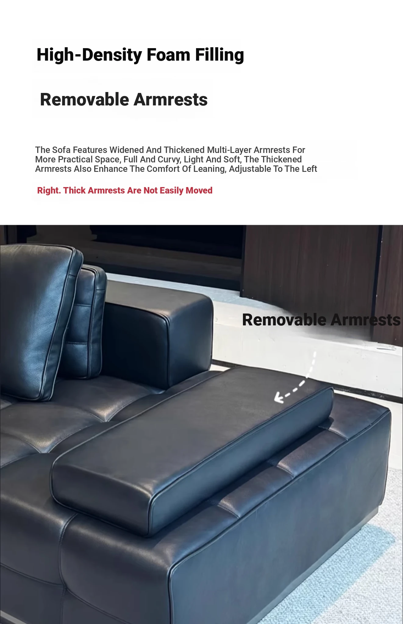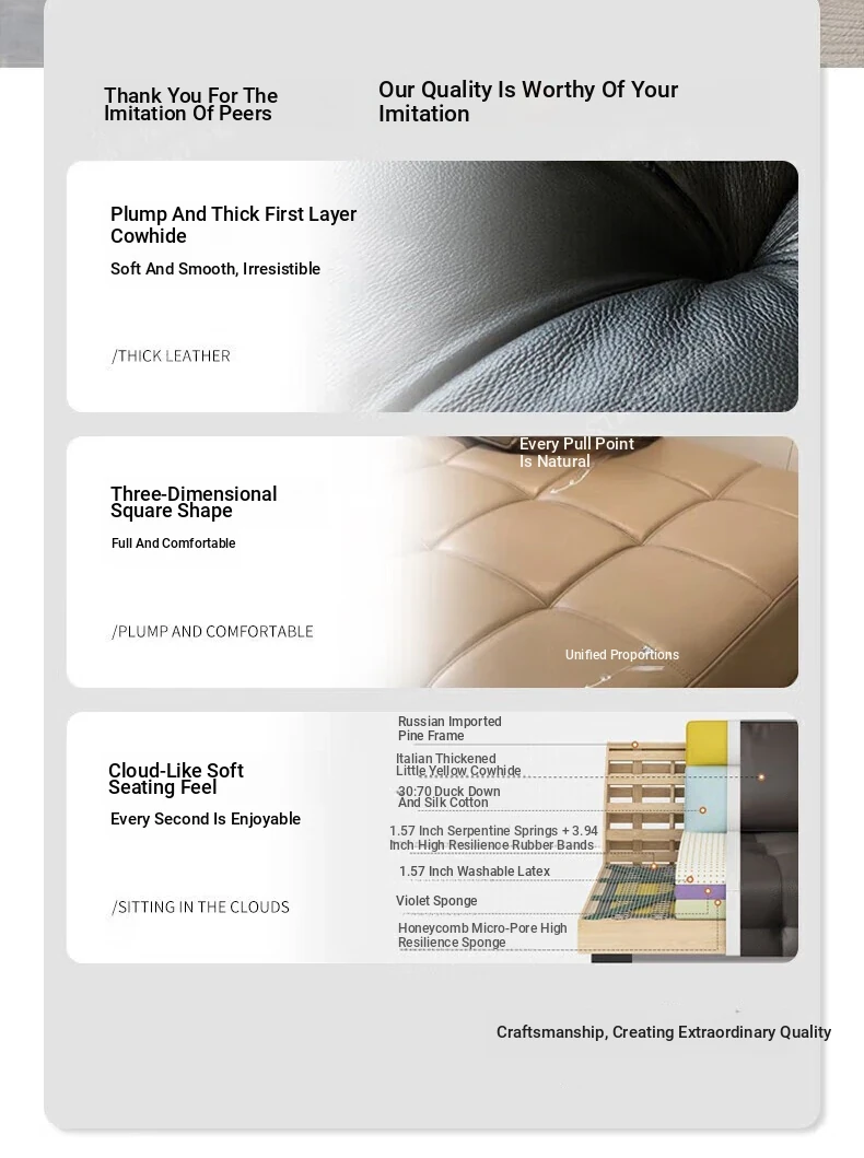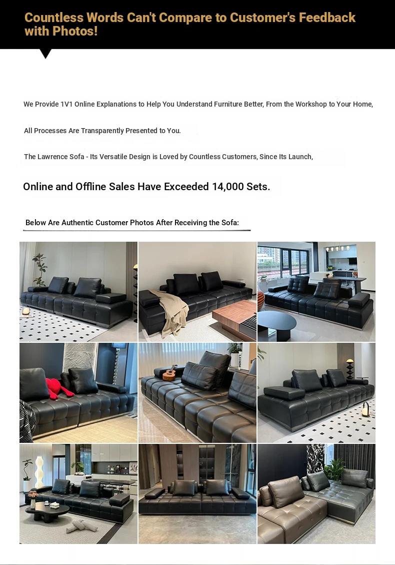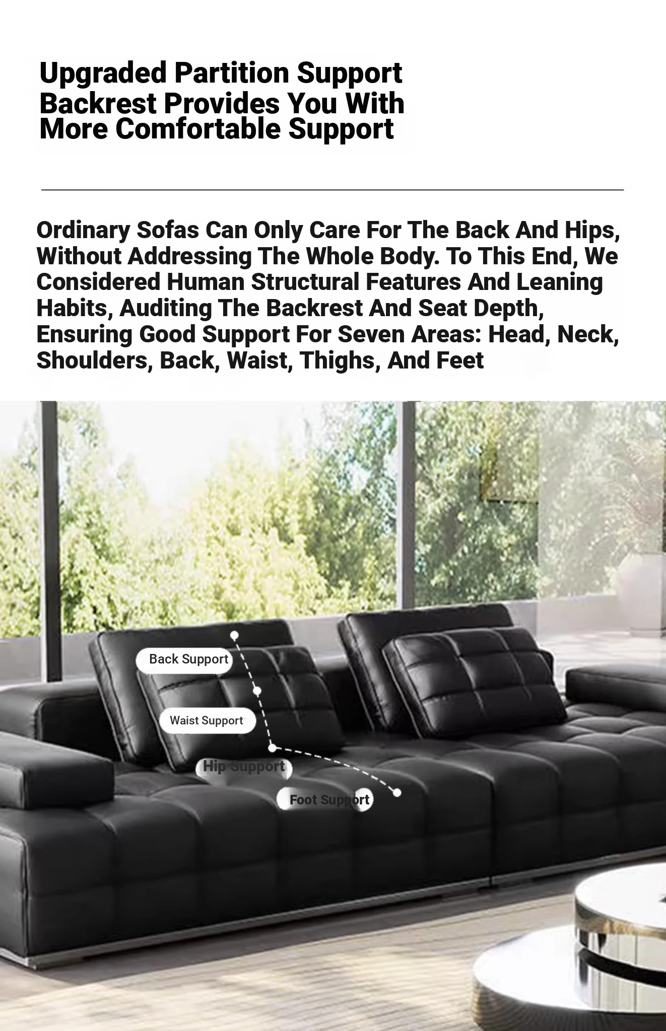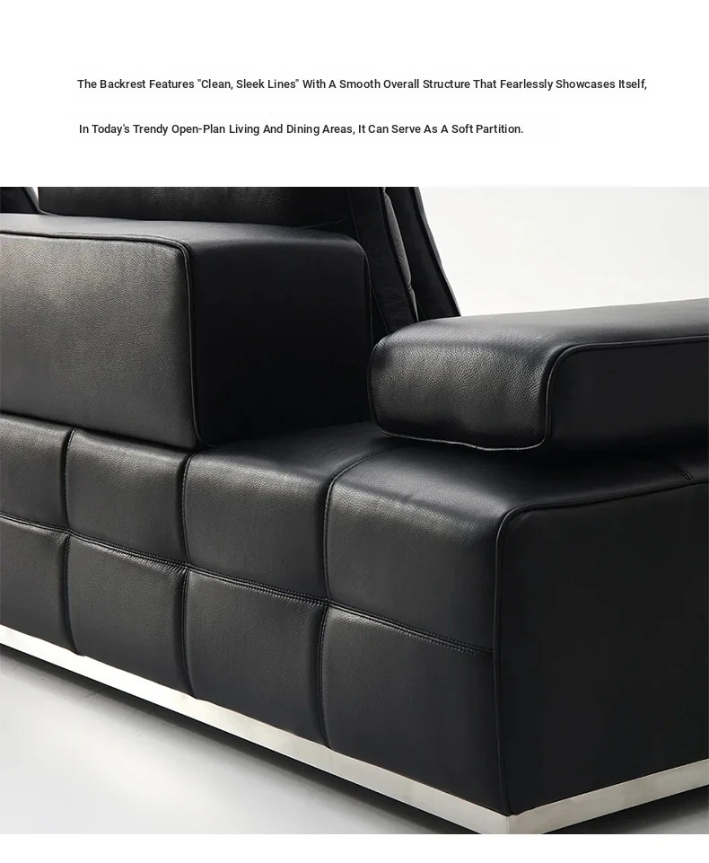 Milan Italian Minimalist Lawrence Genuine Leather Sofa - Luxurious Top Grain Leather Modular Sofa for Villas and Spacious Living Rooms