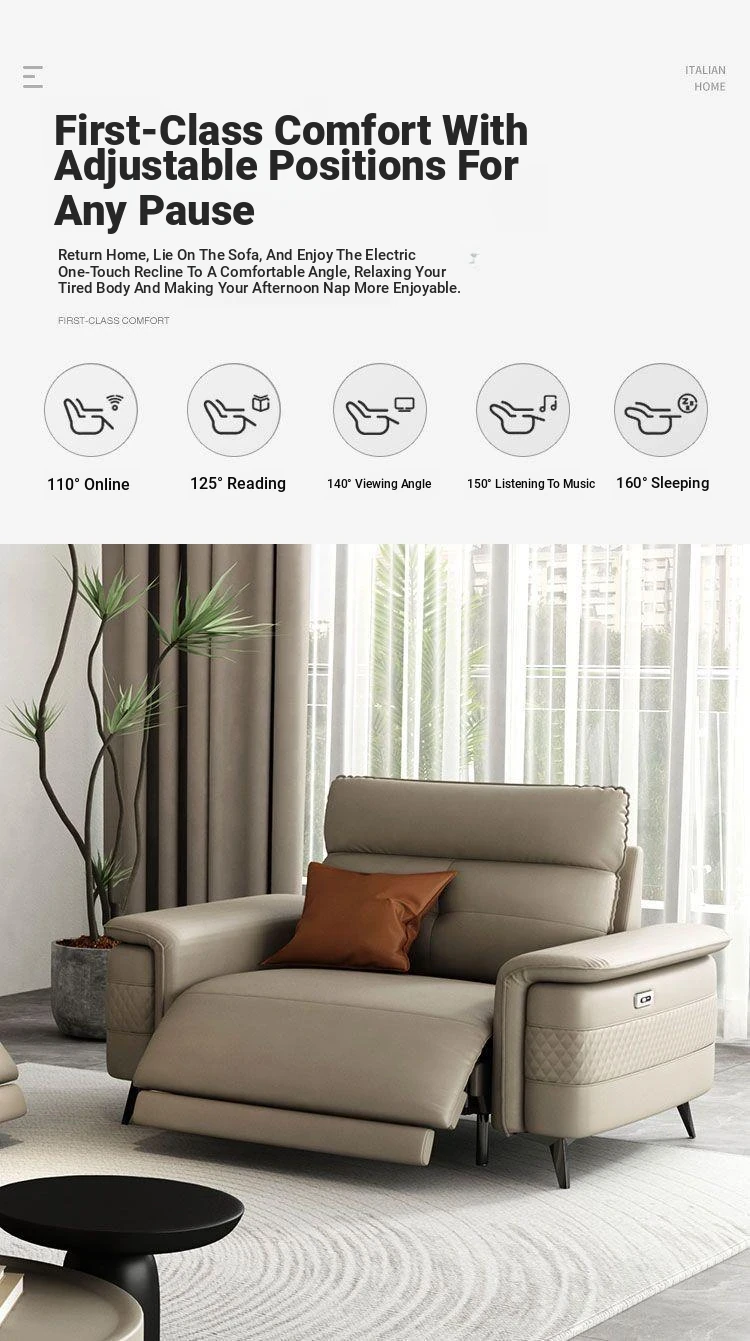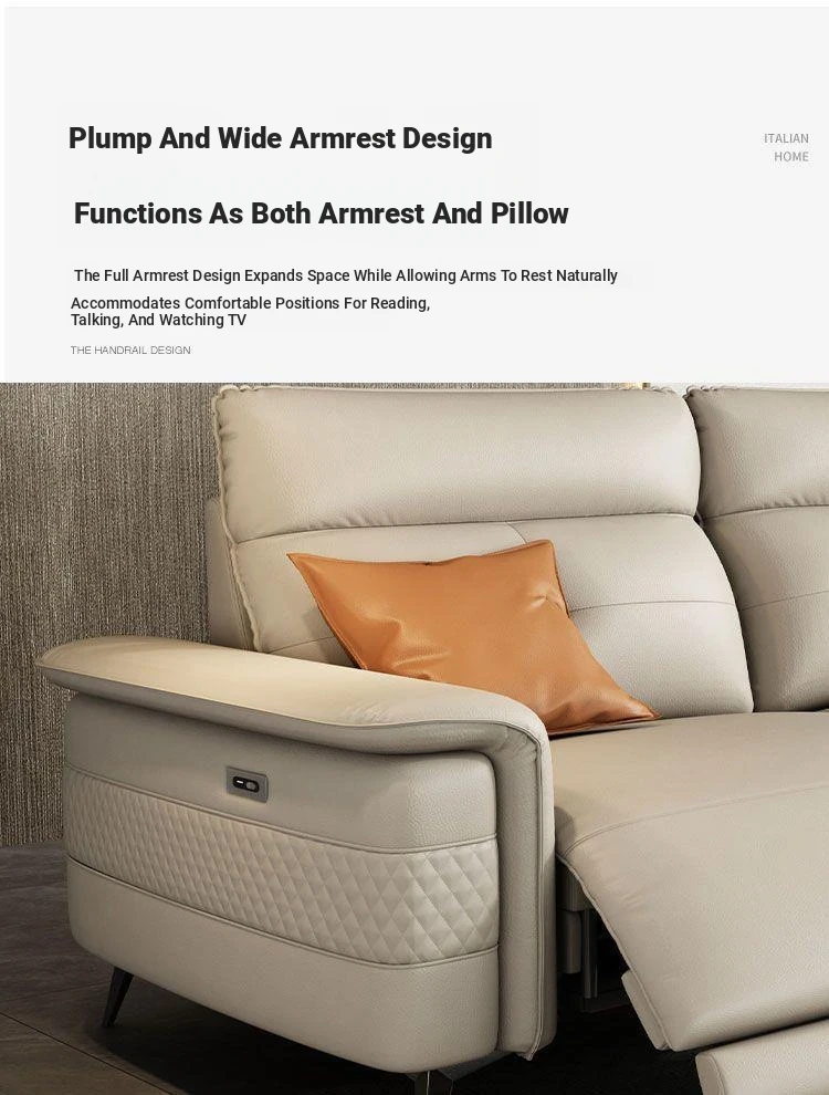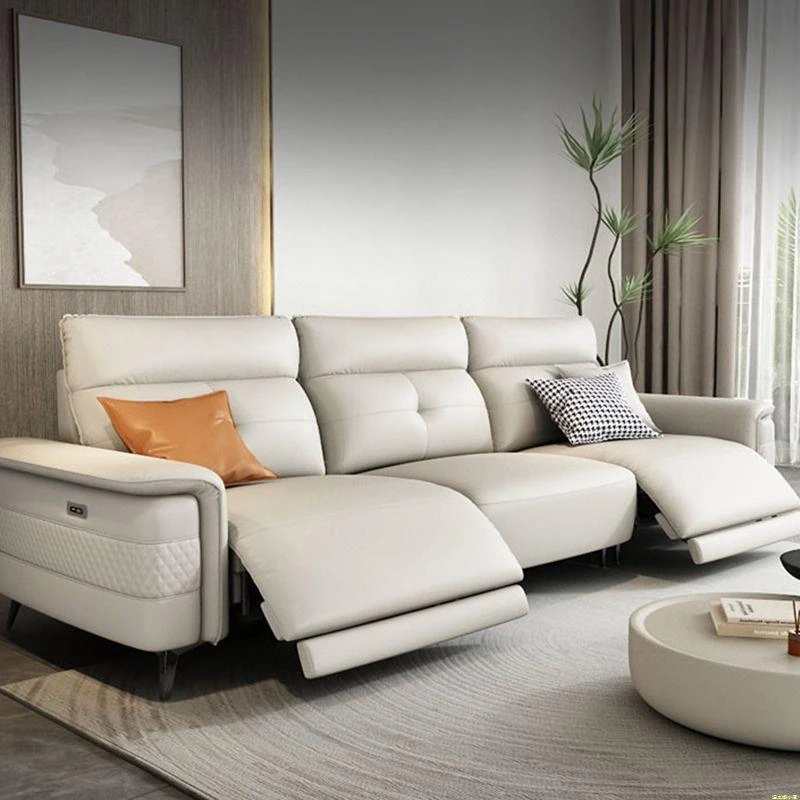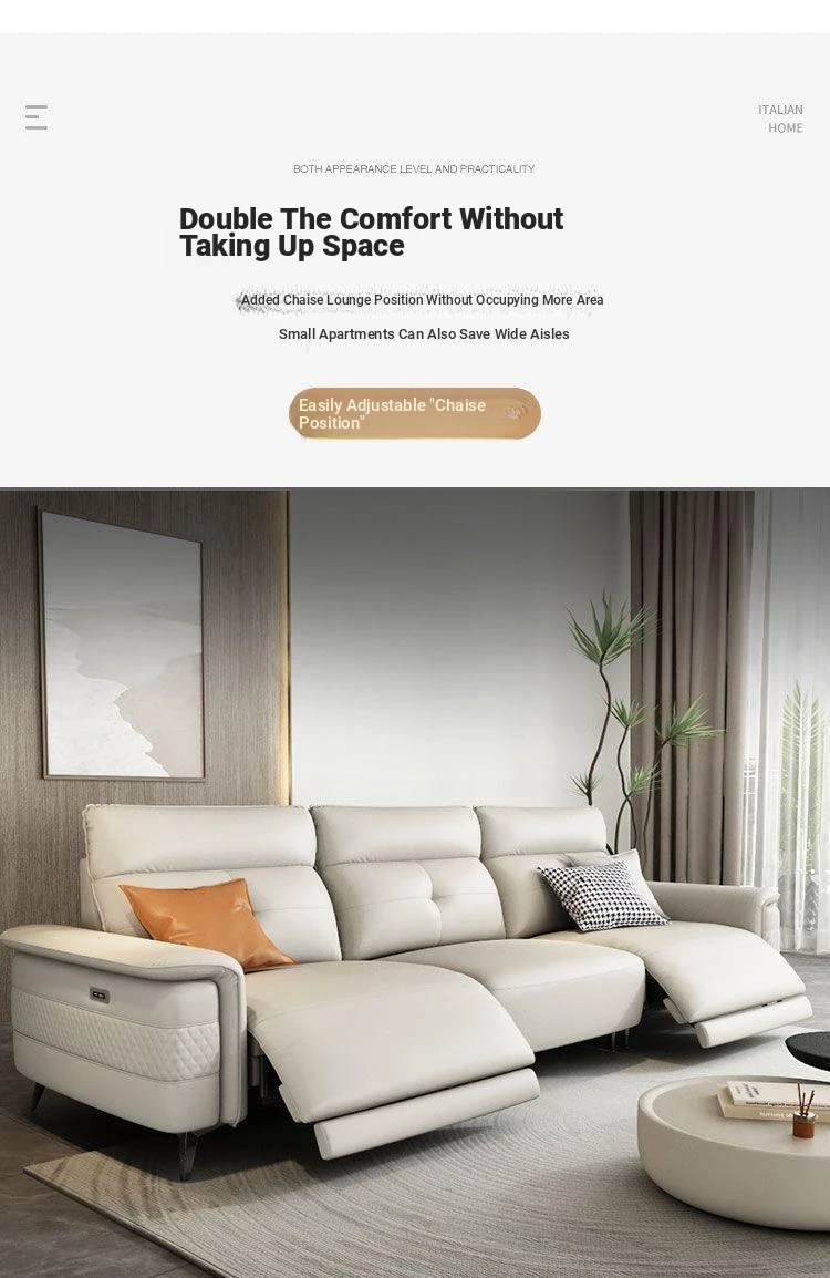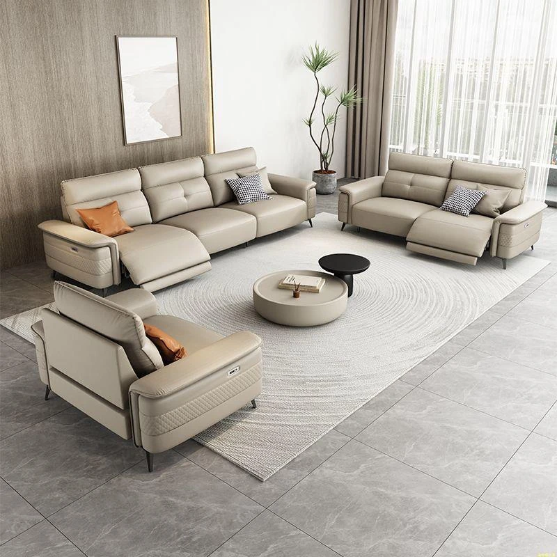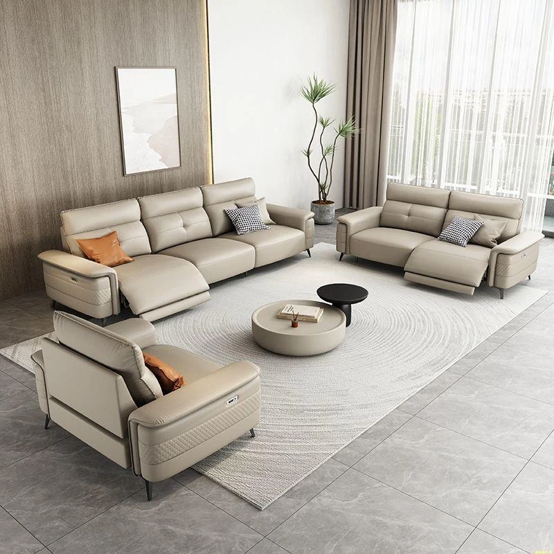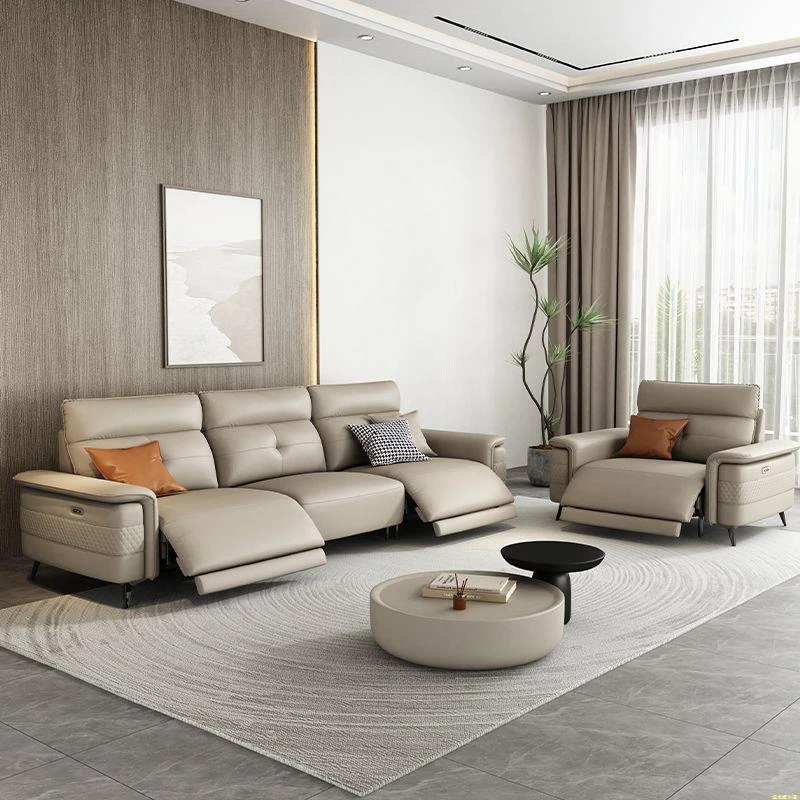 Premium Italian Minimalist Modern Luxury Adjustable Electric Leather Sofa Set for Small to Medium Living Rooms - Perfect for Stylish Living Spaces